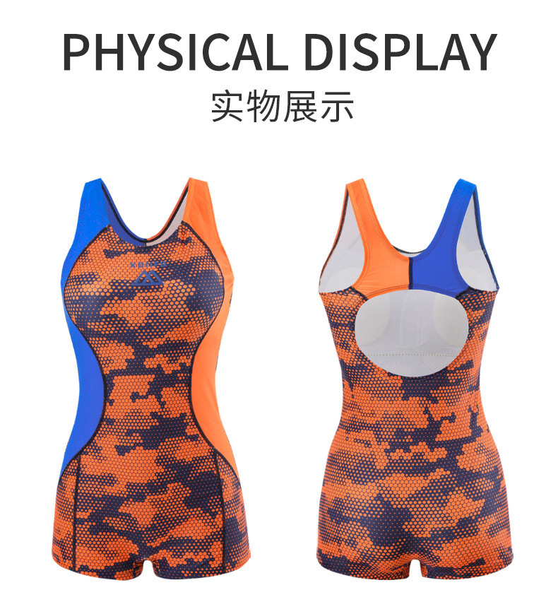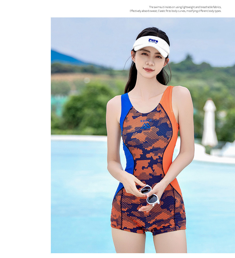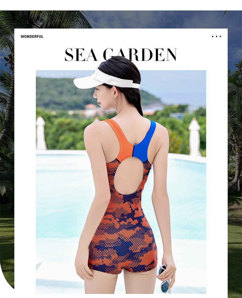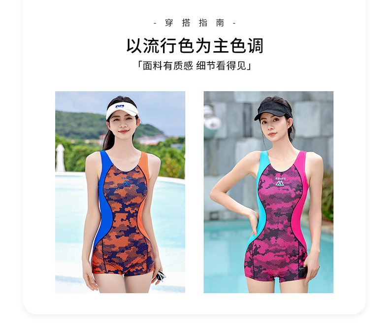 新款夏季游泳衣女平角三角连体专业竞技运动泳装女保守遮肚加大码