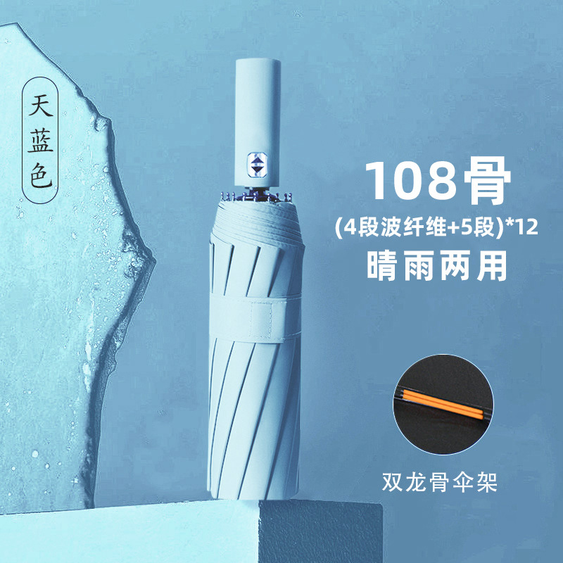 • 전자동 [12*(4+5)=108개의 뼈 방풍 우산 갈비뼈-비닐 자외선 방지-단일 우산] 하늘색