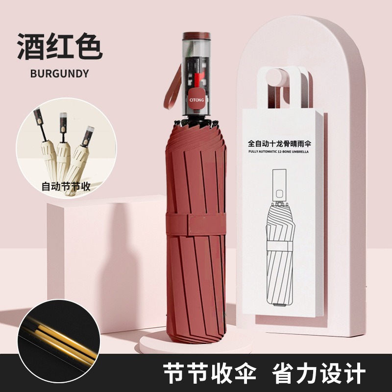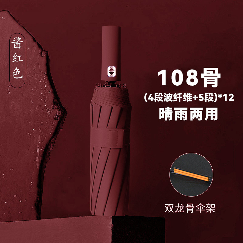 • 전자동 [12*(4+5)=108개의 뼈 방풍 우산 갈비뼈-비닐 자외선 방지-단일 우산] 소스 레드