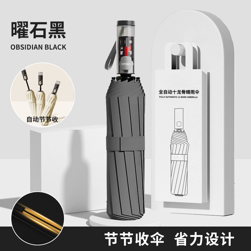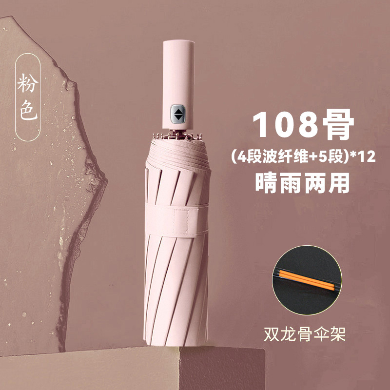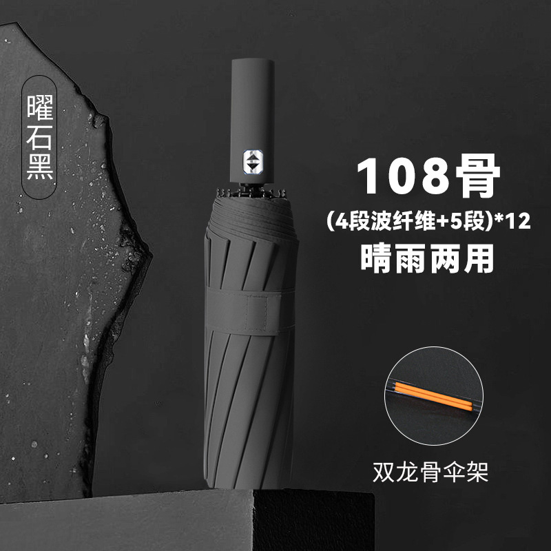 • 전자동 [12*(4+5)=108개의 뼈 방풍 우산 갈비뼈-비닐 자외선 방지-단일 우산] 검정색