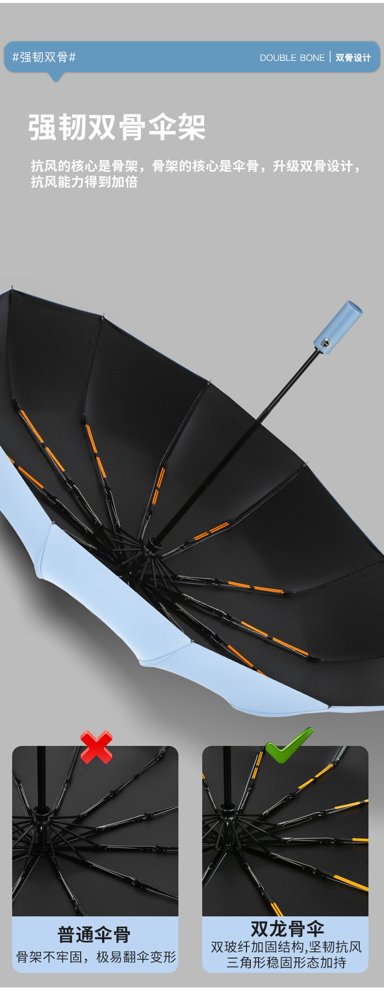 • 완전 자동 업그레이드된 반동 방지 모델/더 적은 노력으로 점차적으로 수집 [12*(4+5)=108 뼈 바람 저항 우산 갈비뼈-비닐 맑은 비 우산] 하늘색