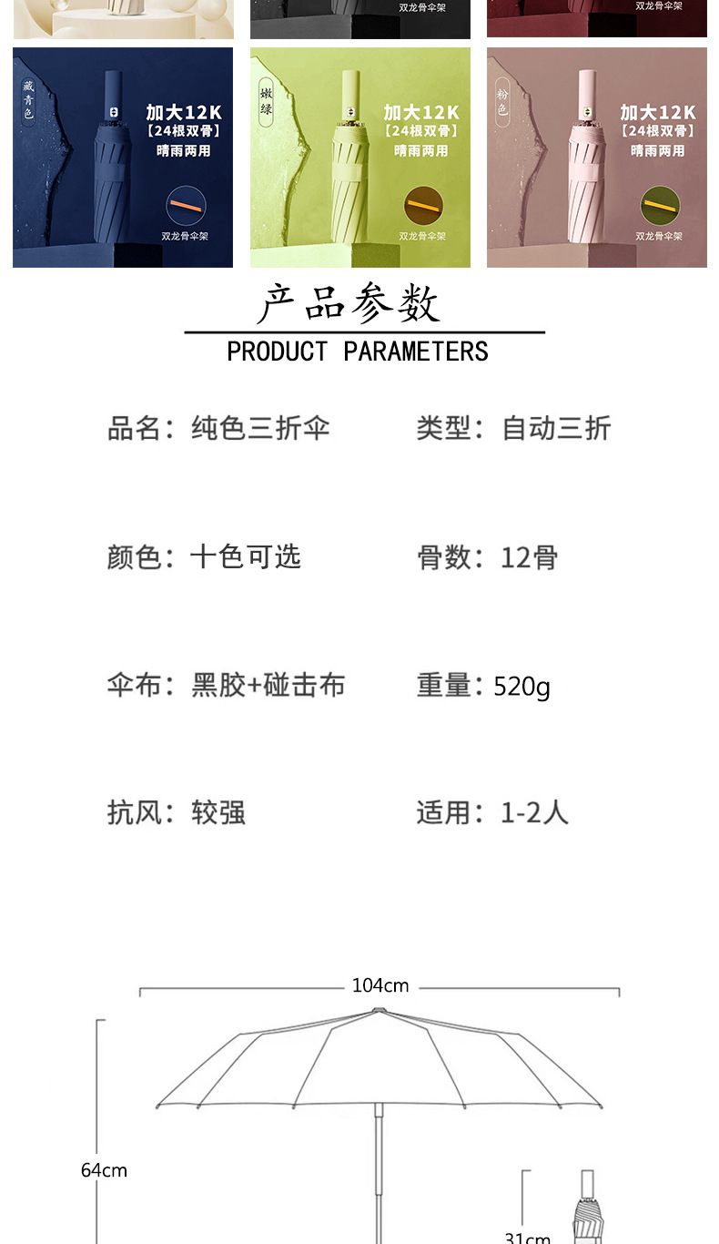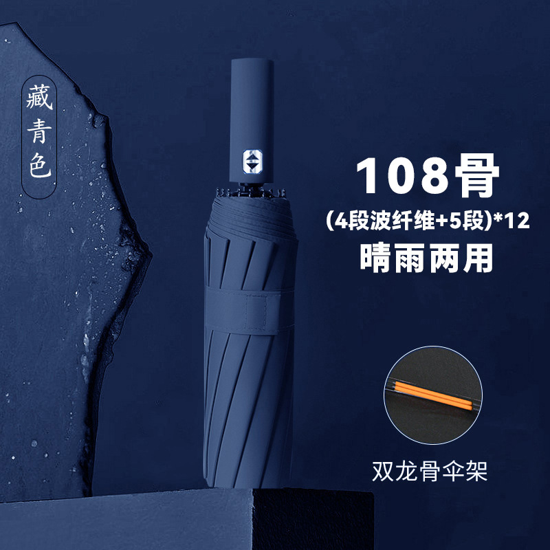 • 전자동 [12*(4+5)=108개의 뼈 방풍 우산 갈비뼈-비닐 자외선 방지-단일 우산] 네이비 블루