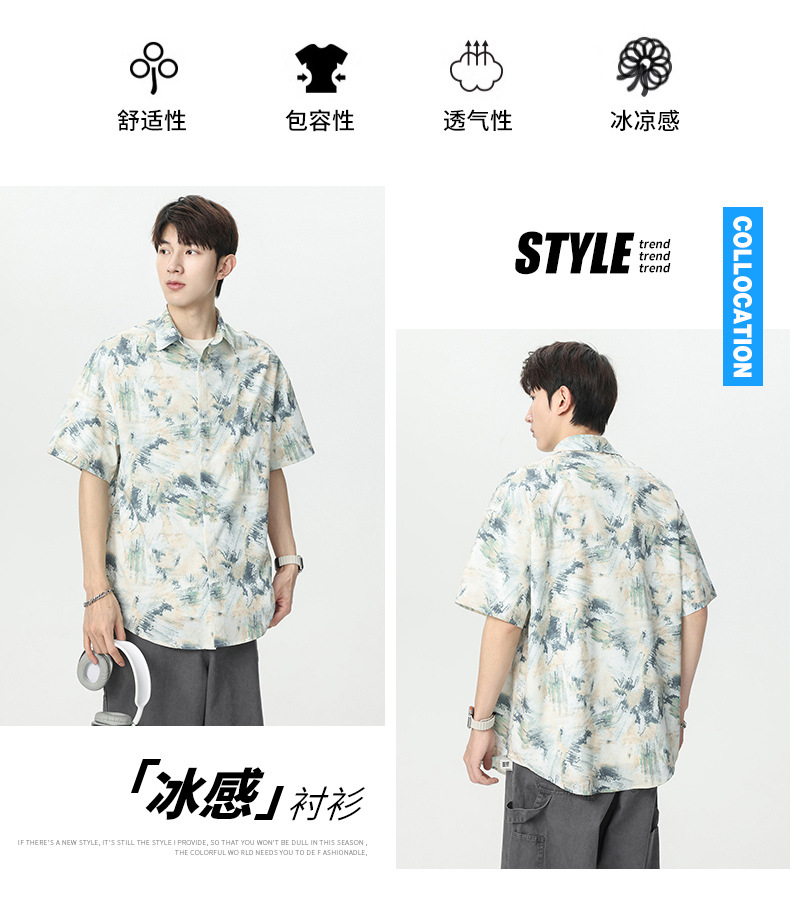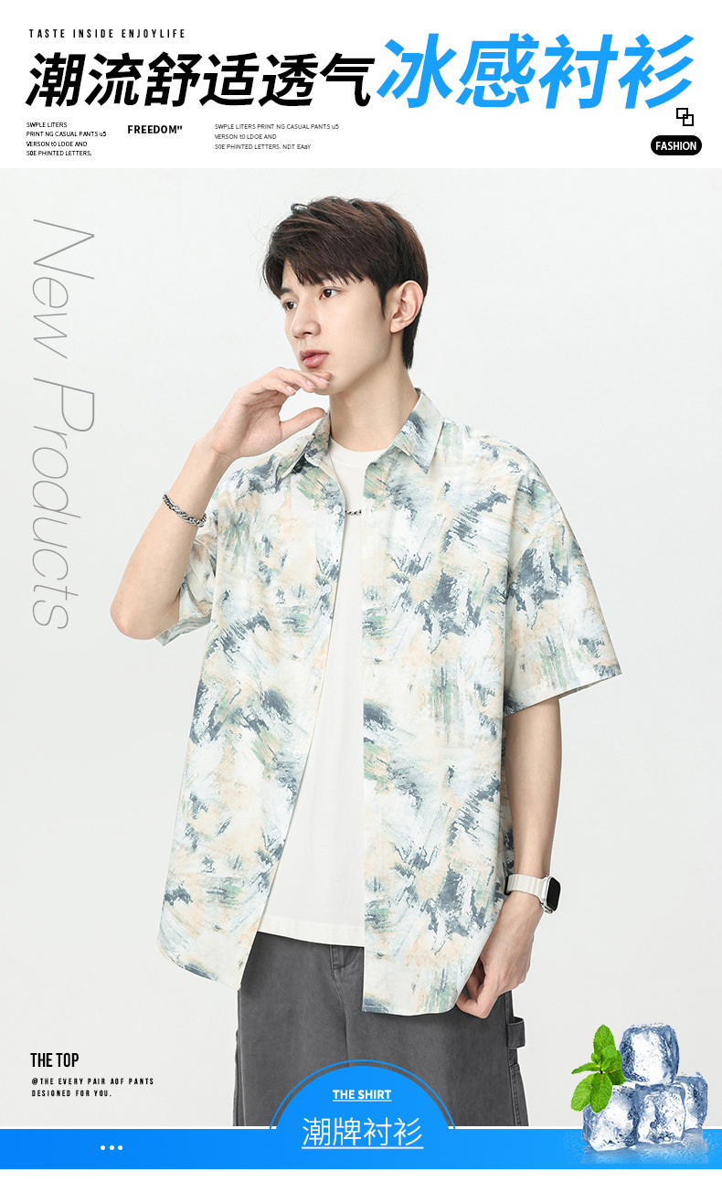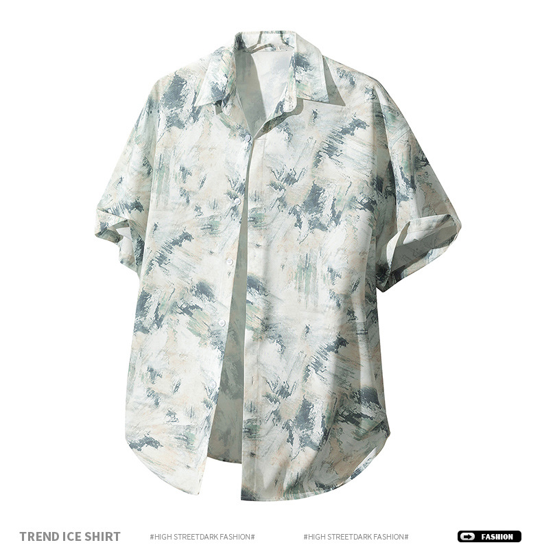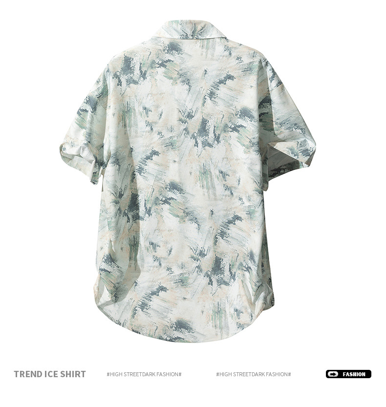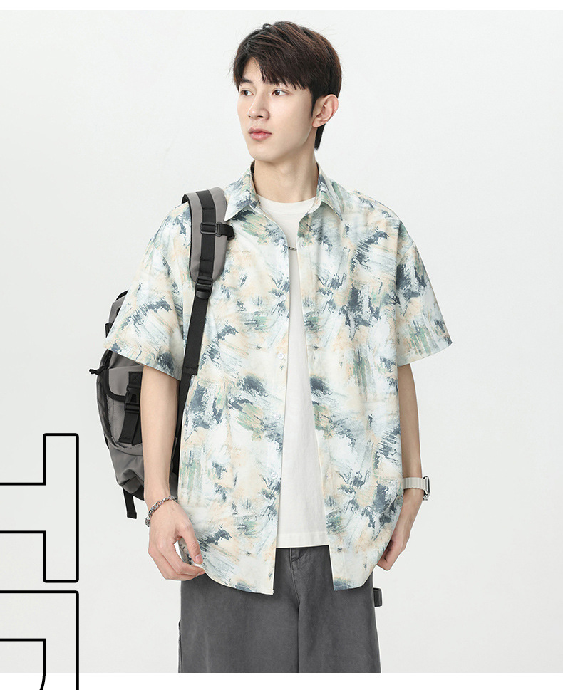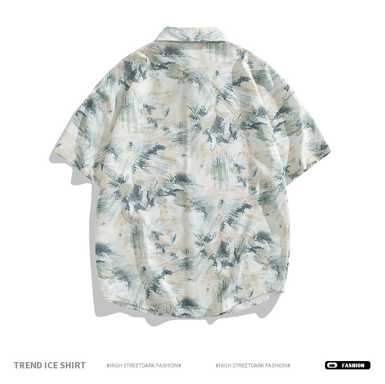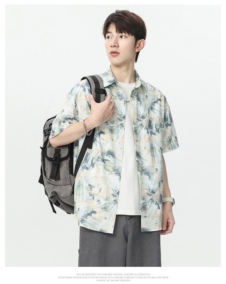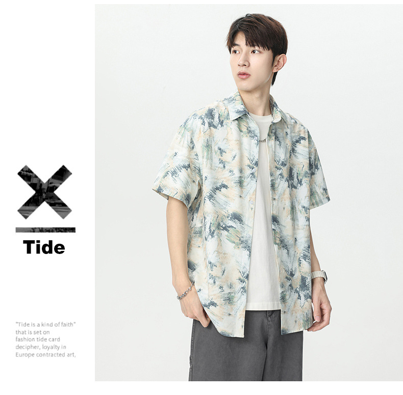 남성용 타이 염색 반팔 셔츠 여름 신작 트렌디 브랜드 루즈 라펠 반팔 셔츠 소년 및 청소년 트렌디 탑