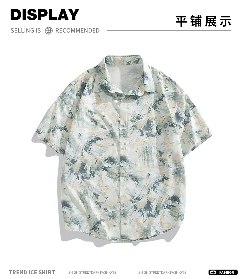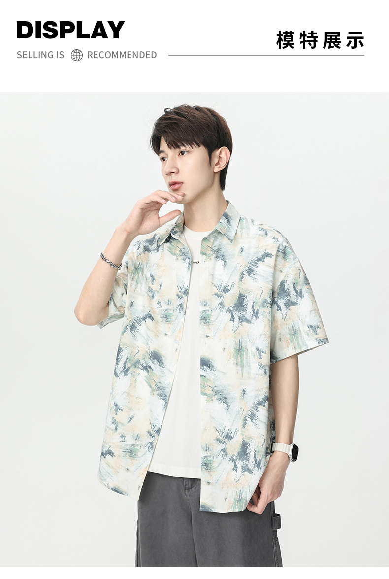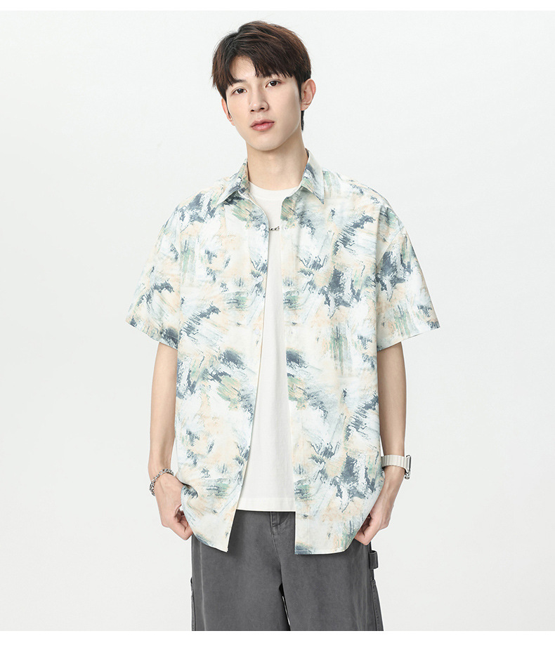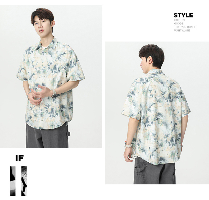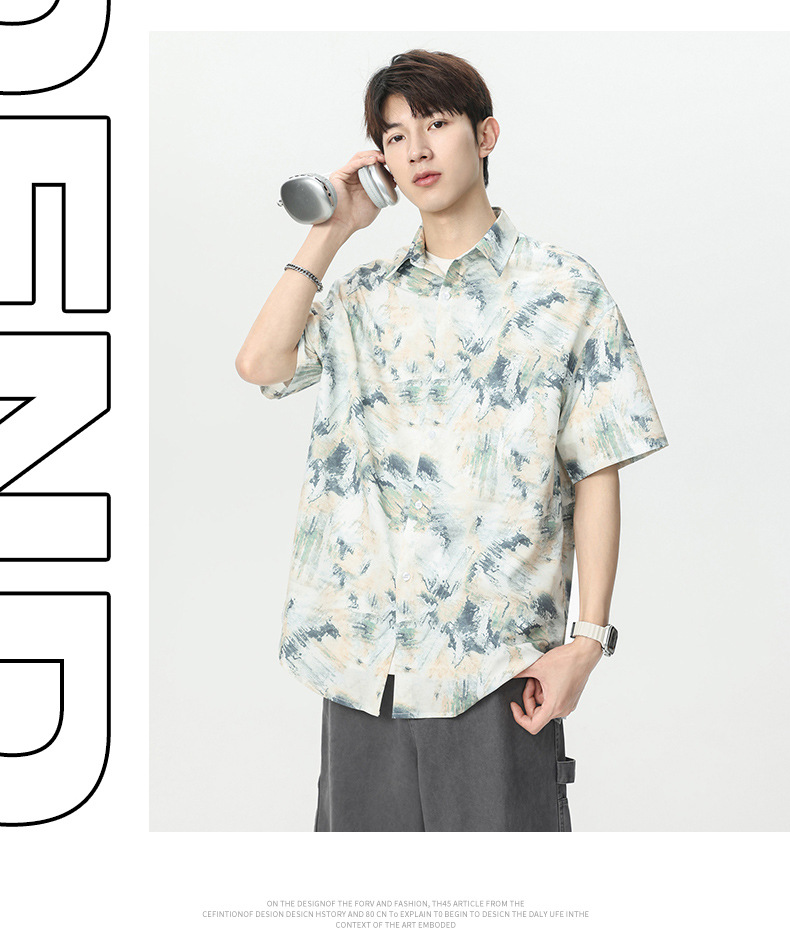 남성용 타이 염색 반팔 셔츠 여름 신작 트렌디 브랜드 루즈 라펠 반팔 셔츠 소년 및 청소년 트렌디 탑스토어 가기