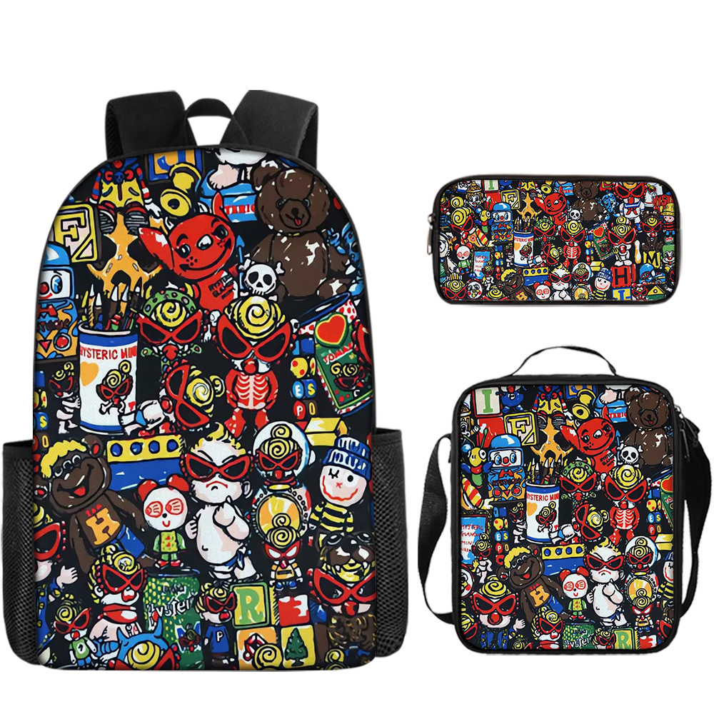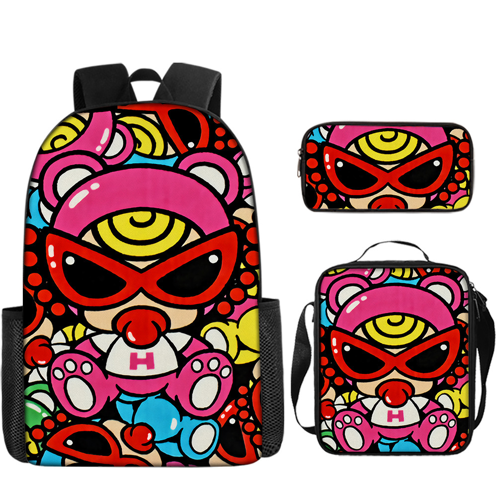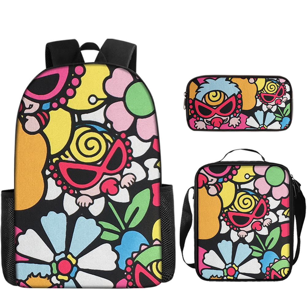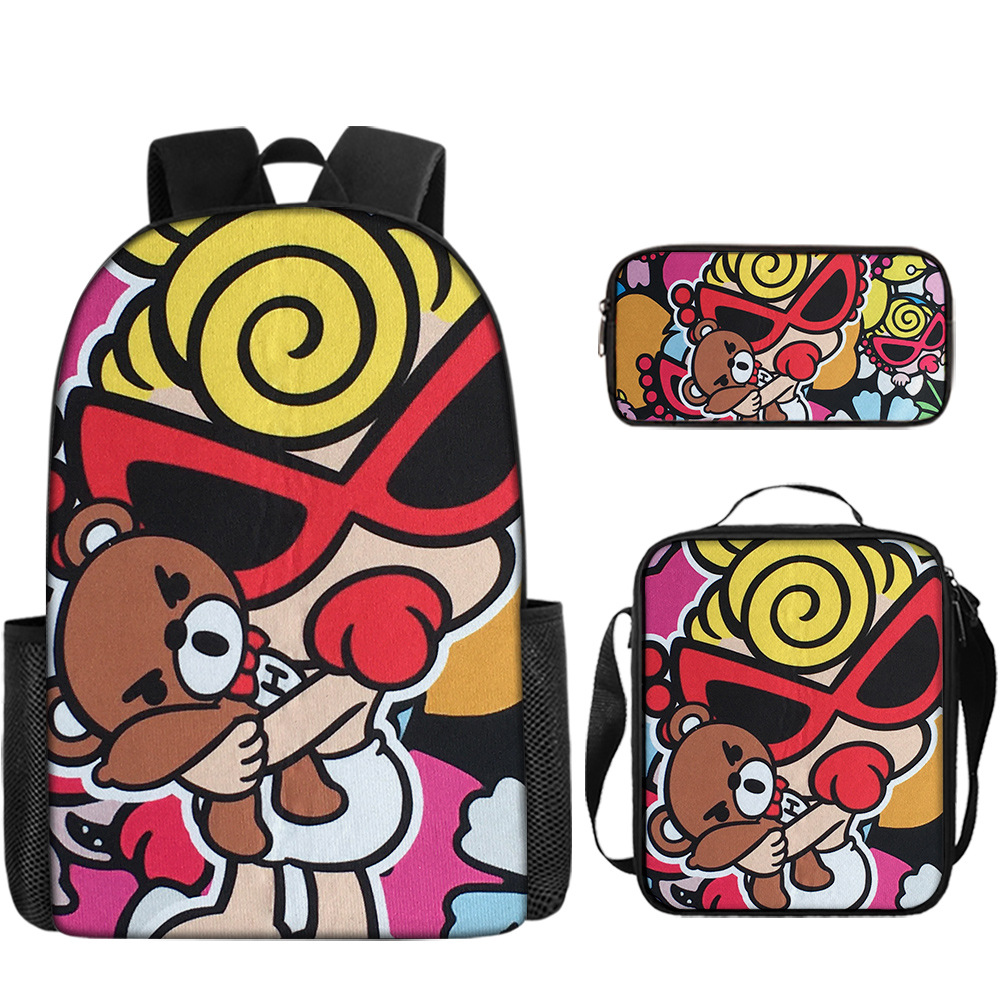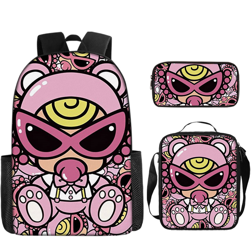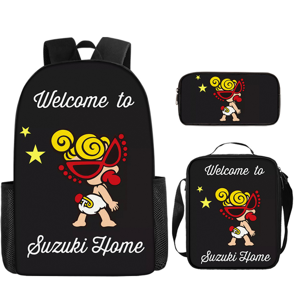 젖꼭지 블랙 슈퍼 펜 가방 크로스 바디 백 배낭 펜 가방 도시락 가방 배낭 어린이 세트 가방
