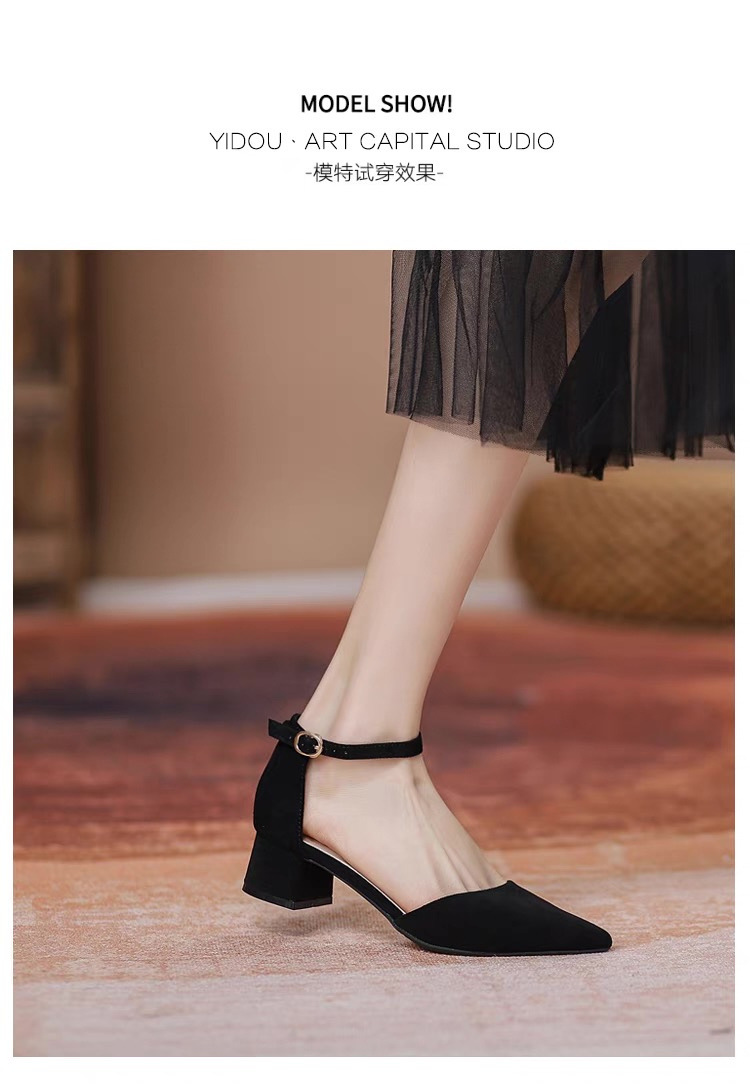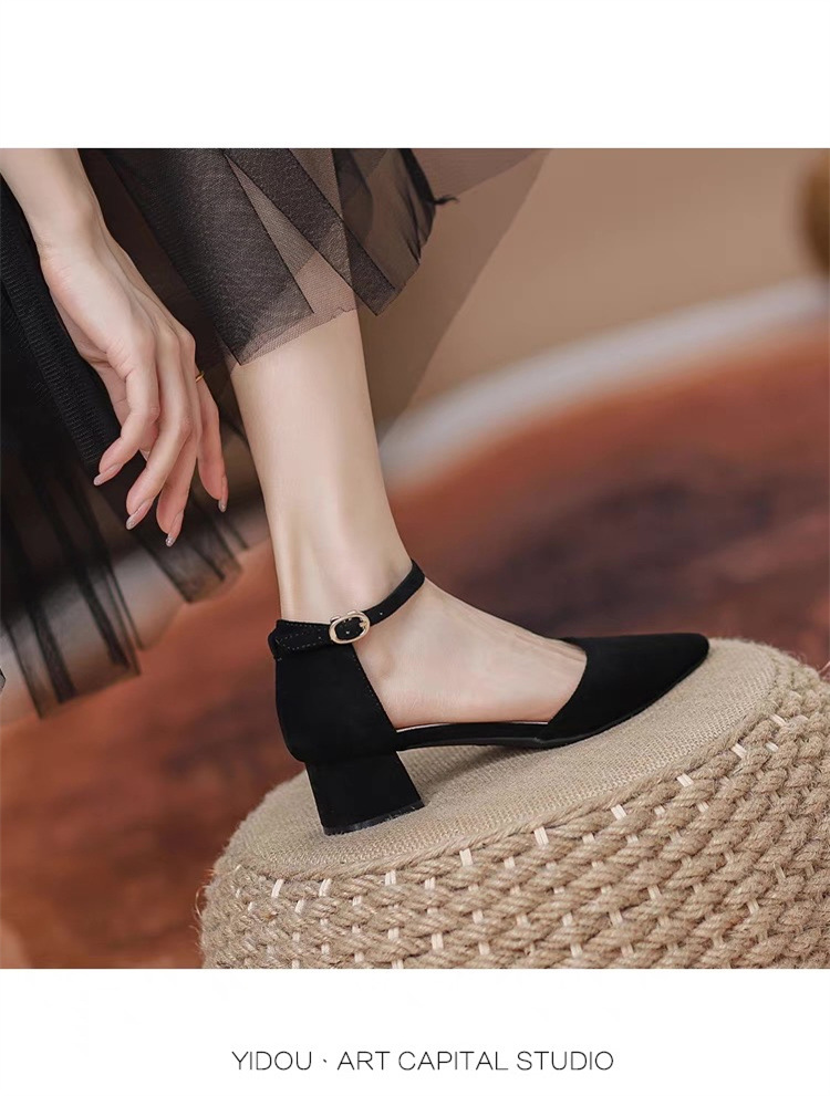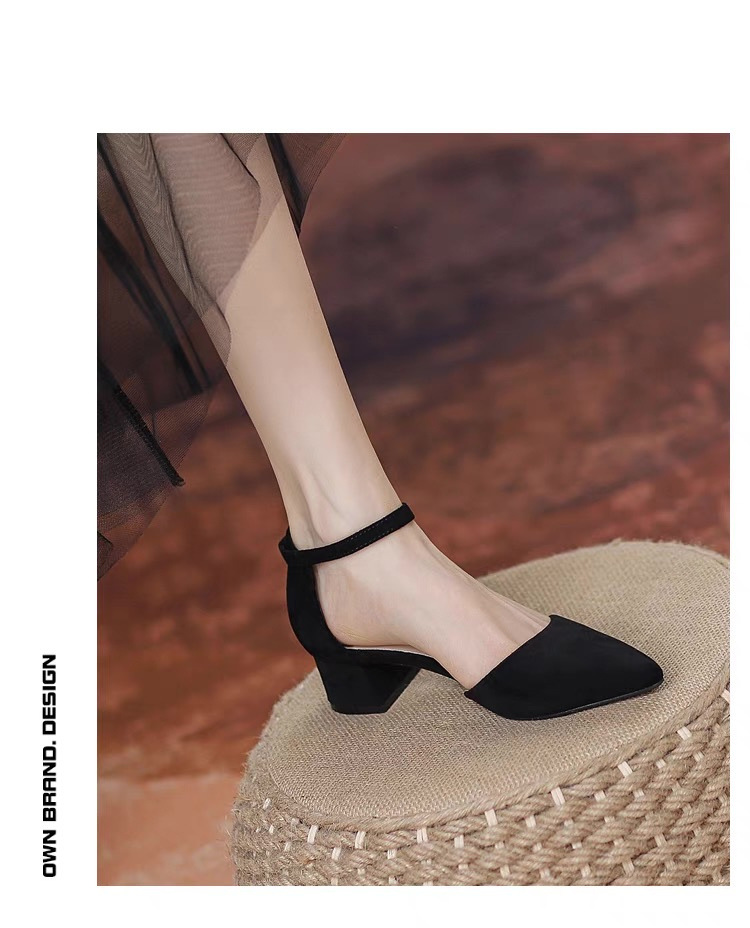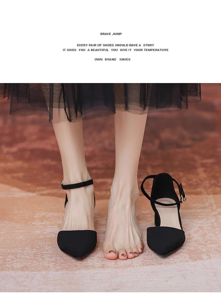 Baotou 샌들 여성 요정 스타일 2025 봄 새로운 전문 포인티드 토 하이힐 원라인 두꺼운 굽 중간 굽 신발스토어 가기