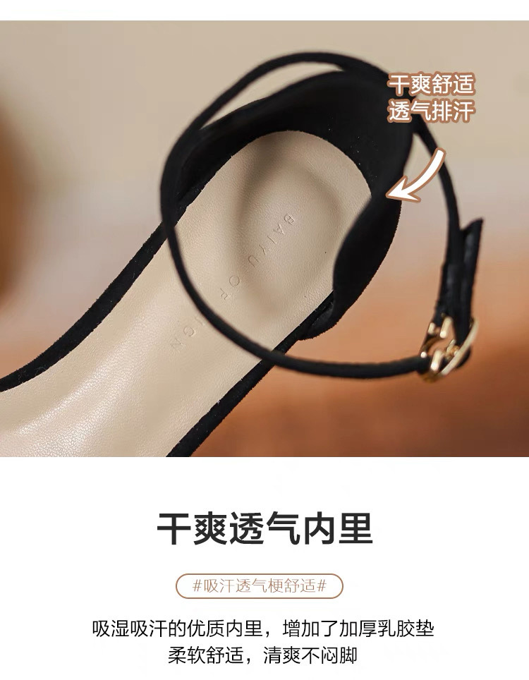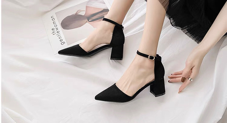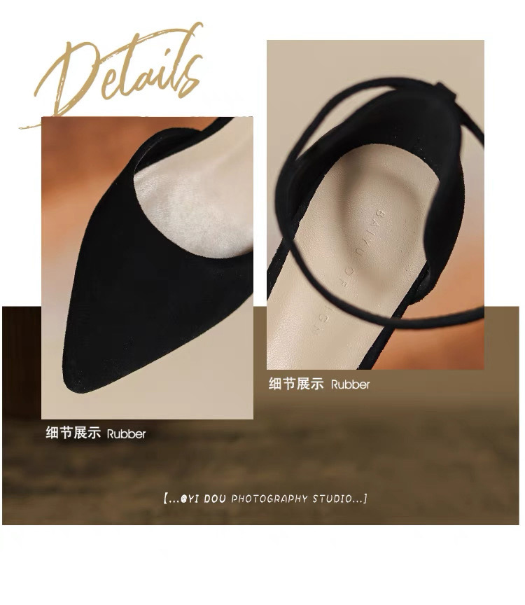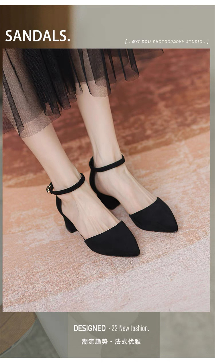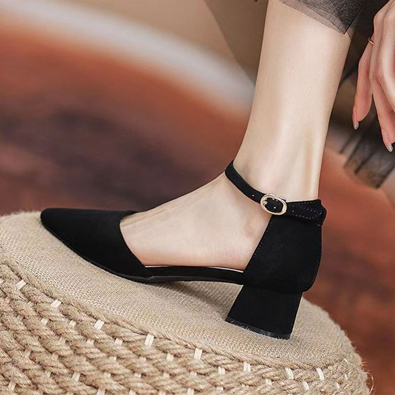 Baotou 샌들 여성 요정 스타일 2025 봄 새로운 전문 포인티드 토 하이힐 원라인 두꺼운 굽 중간 굽 신발스토어 가기
