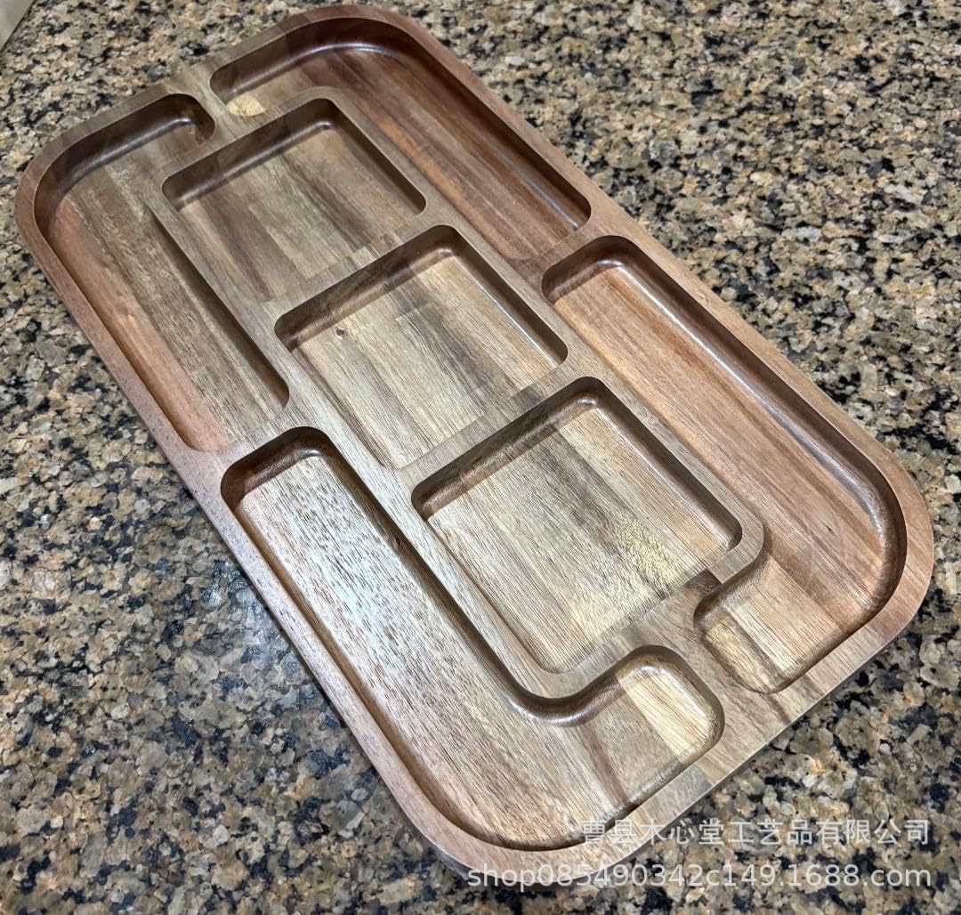 국경 간 목재 트레이 단단한 치즈 케이크 트레이 데스크탑 분할 스낵 과일 트레이 아카시아 나무 트레이