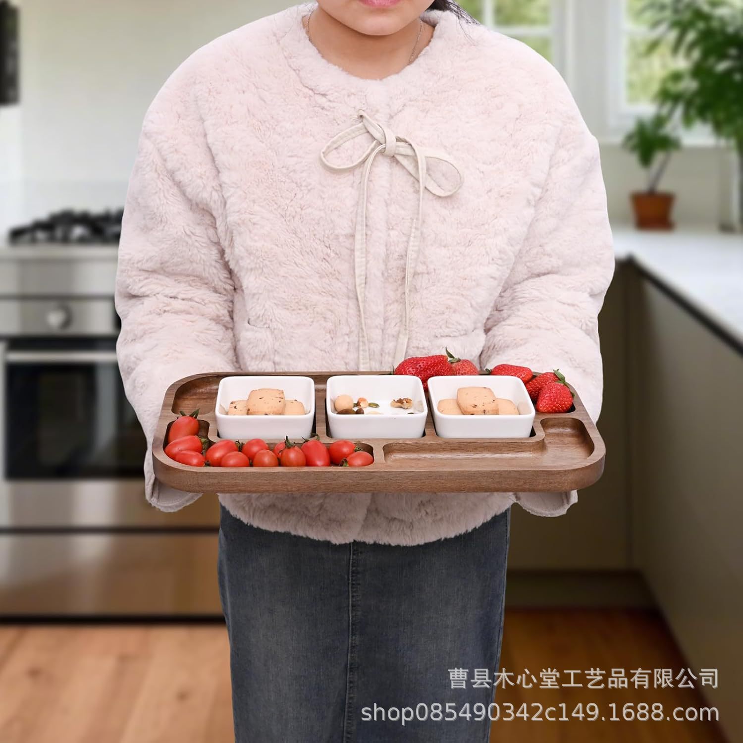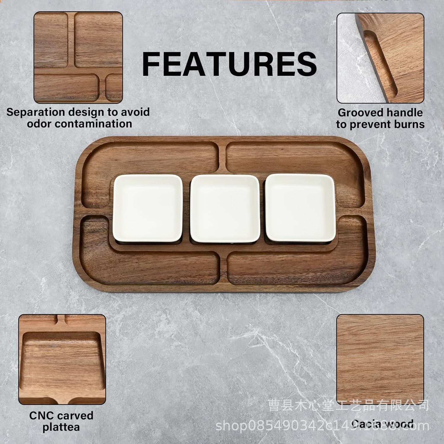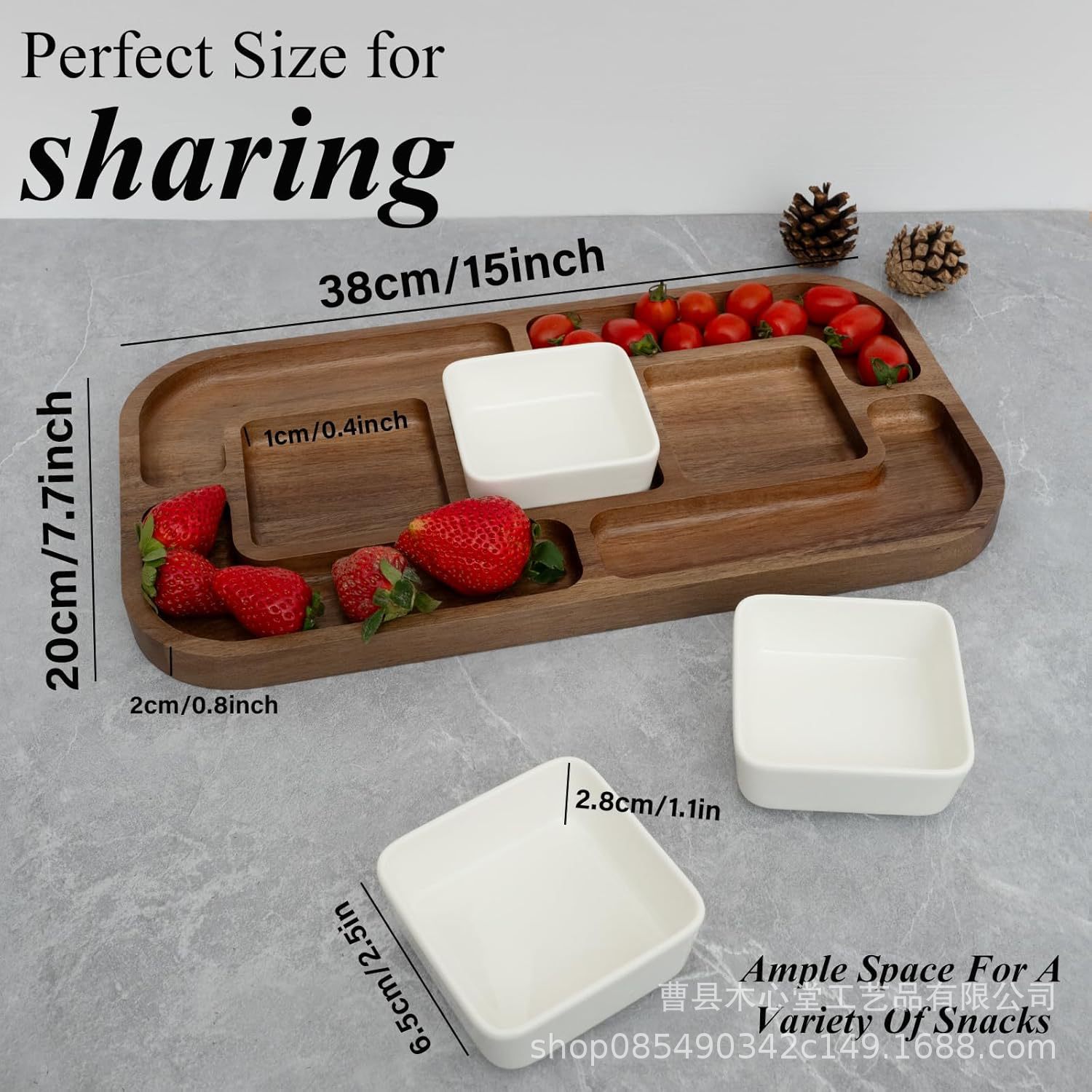 국경 간 목재 트레이 단단한 치즈 케이크 트레이 데스크탑 분할 스낵 과일 트레이 아카시아 나무 트레이스토어 가기