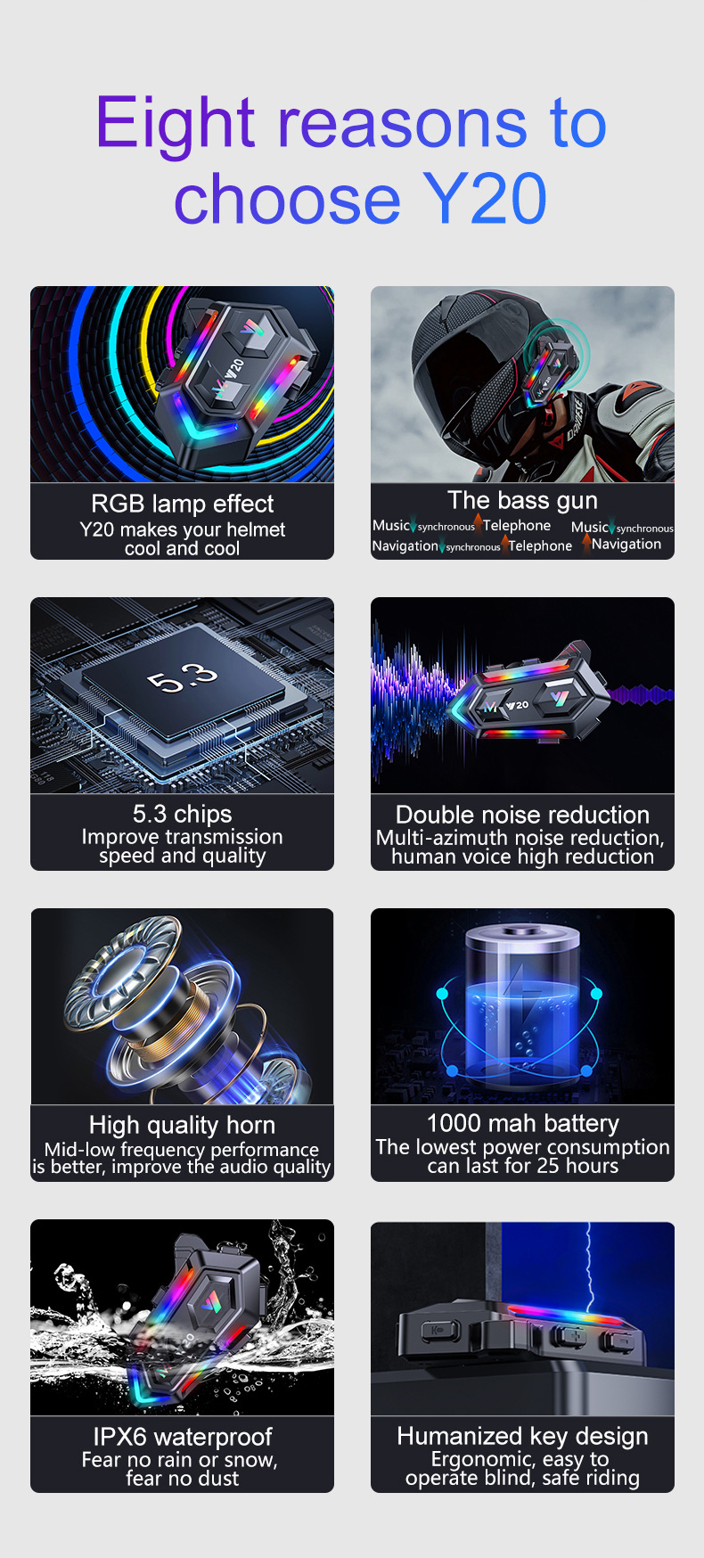 Y20 국경 간 특수 헬멧 블루투스 헤드셋 방수 및 방진 RGB 다채로운 빛 중저음 헬멧 헤드셋 공장