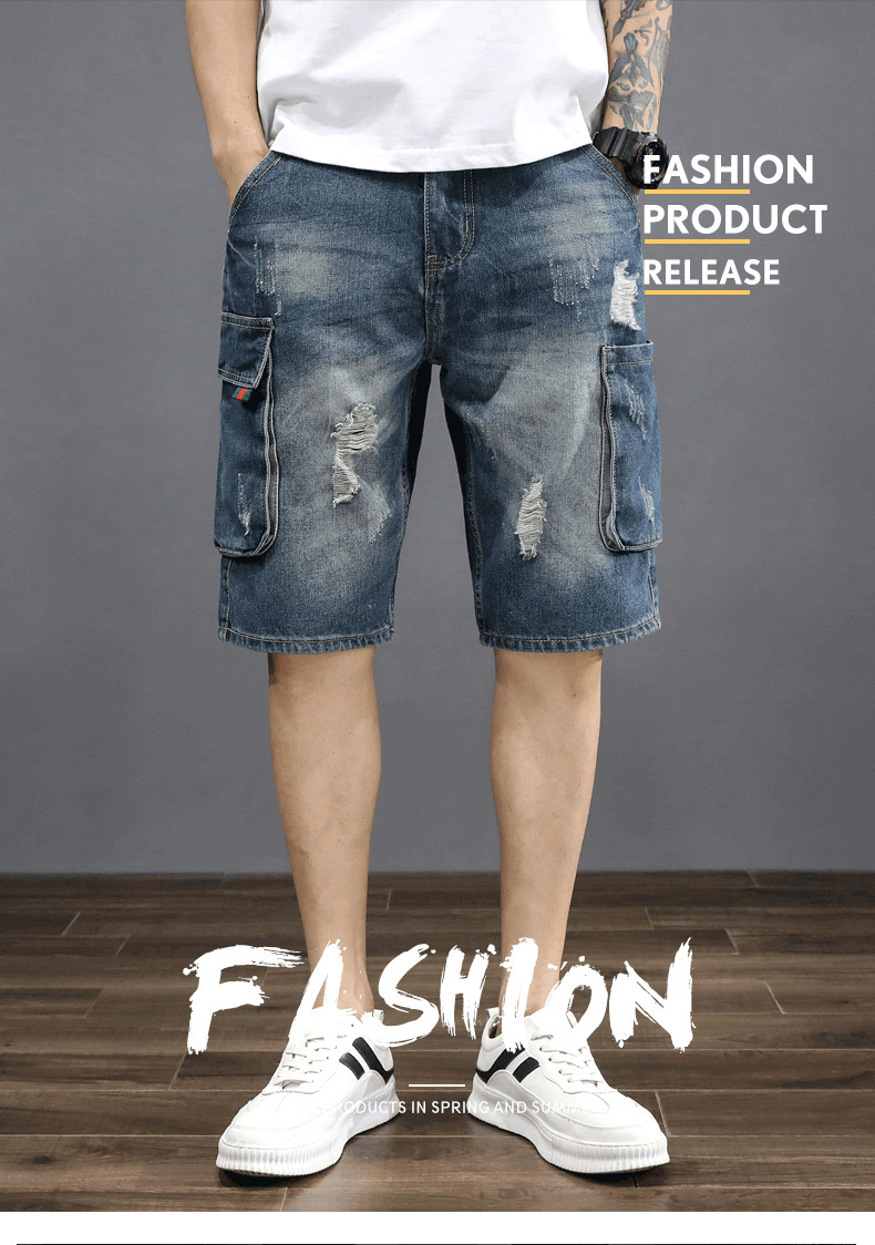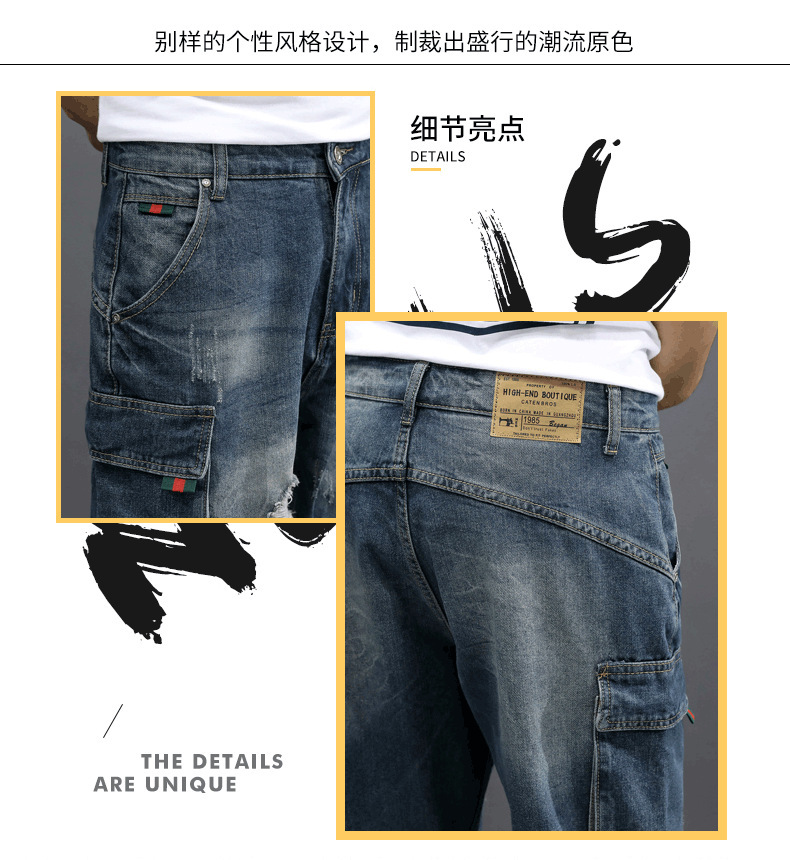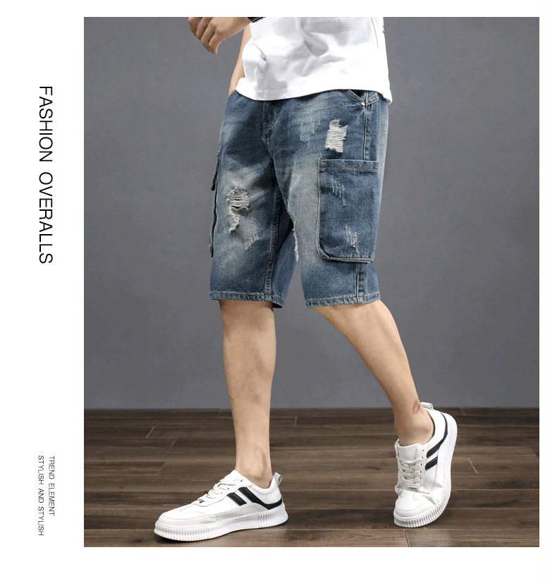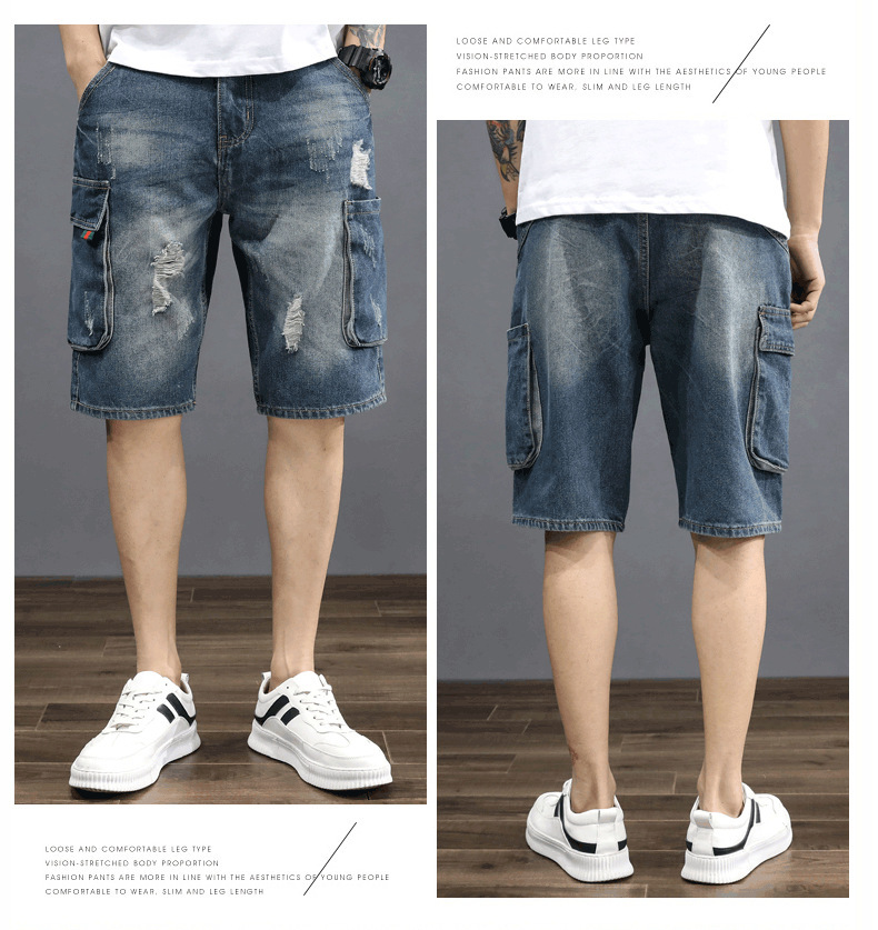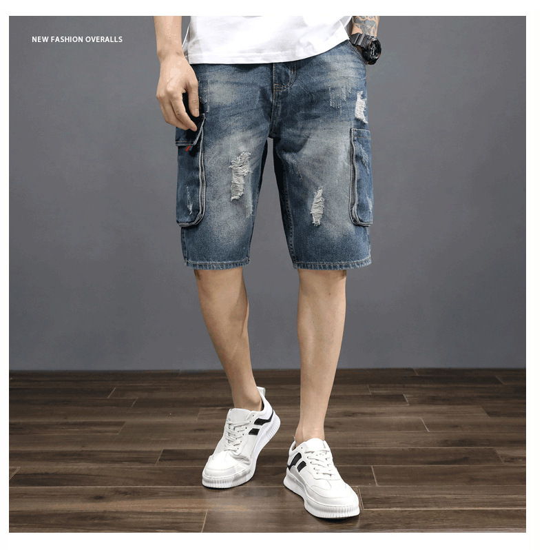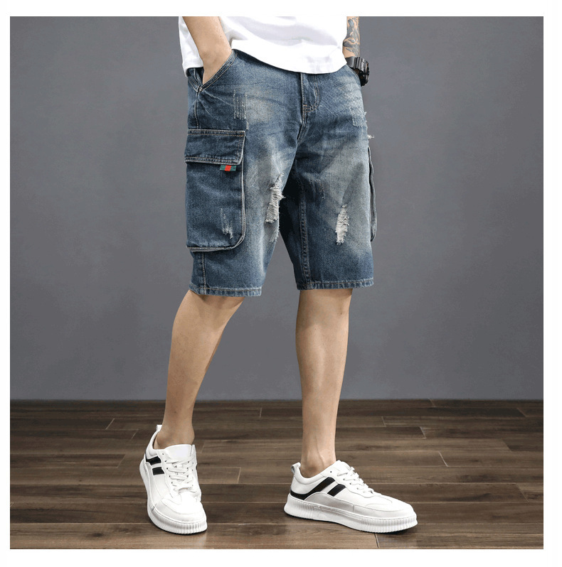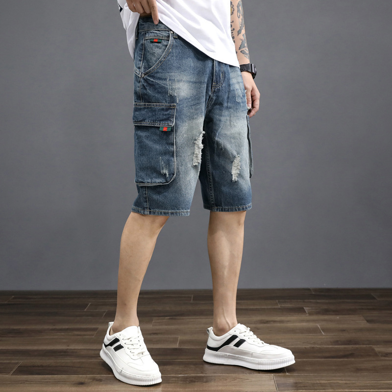 남성용 데님 5부 팬츠, 루즈핏, 트렌디, 다재다능한 일본 복고풍 한국식 여름 남성용 미드팬츠