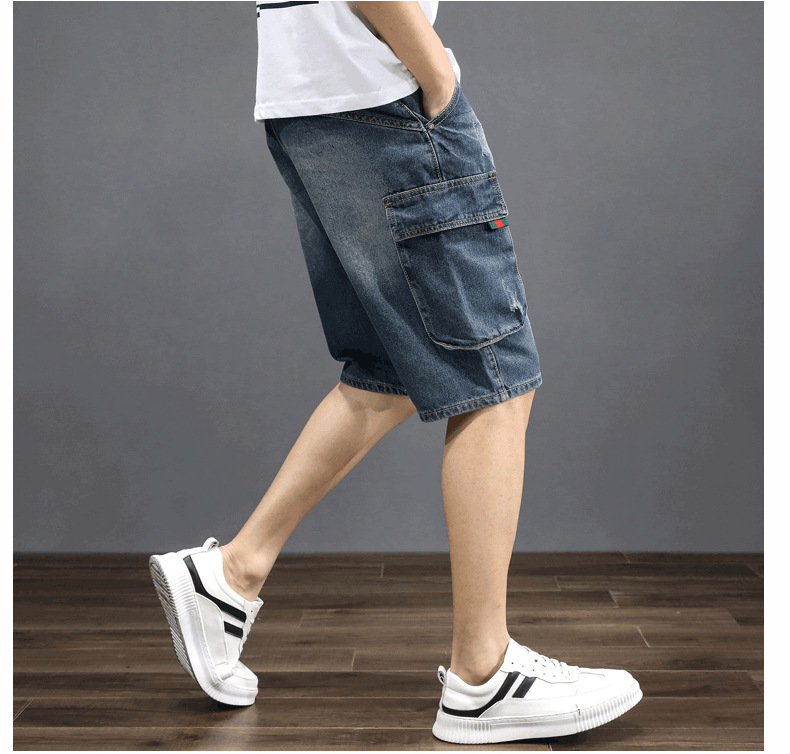 남성용 데님 5부 팬츠, 루즈핏, 트렌디, 다재다능한 일본 복고풍 한국식 여름 남성용 미드팬츠스토어 가기