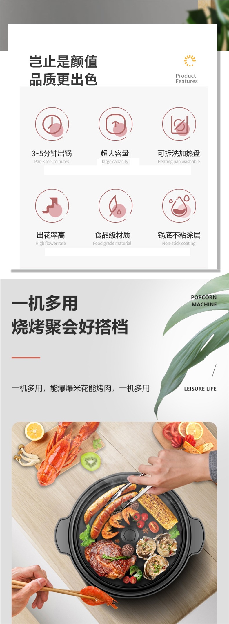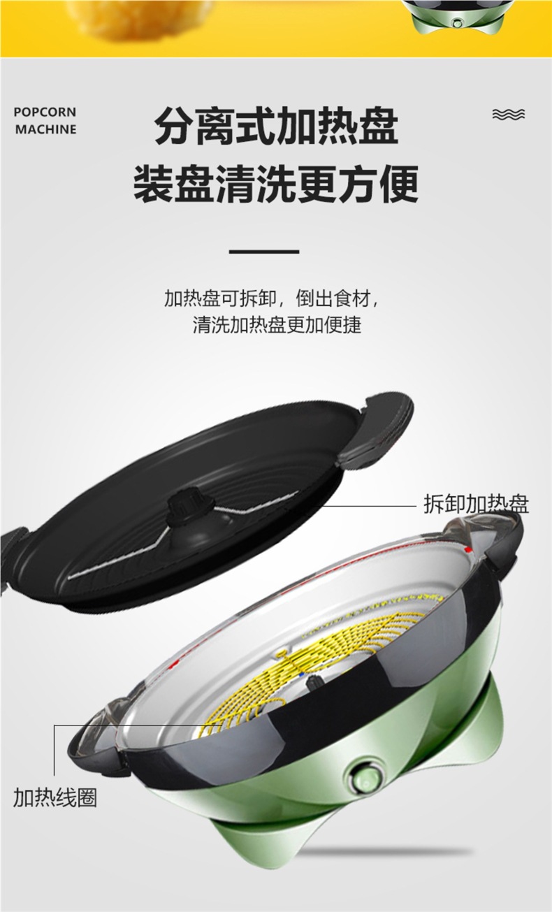 팝콘 기계 가정용 5 리터 대용량 분리형 완전 자동 소형 다기능 오일 및 설탕 DIY 바베큐