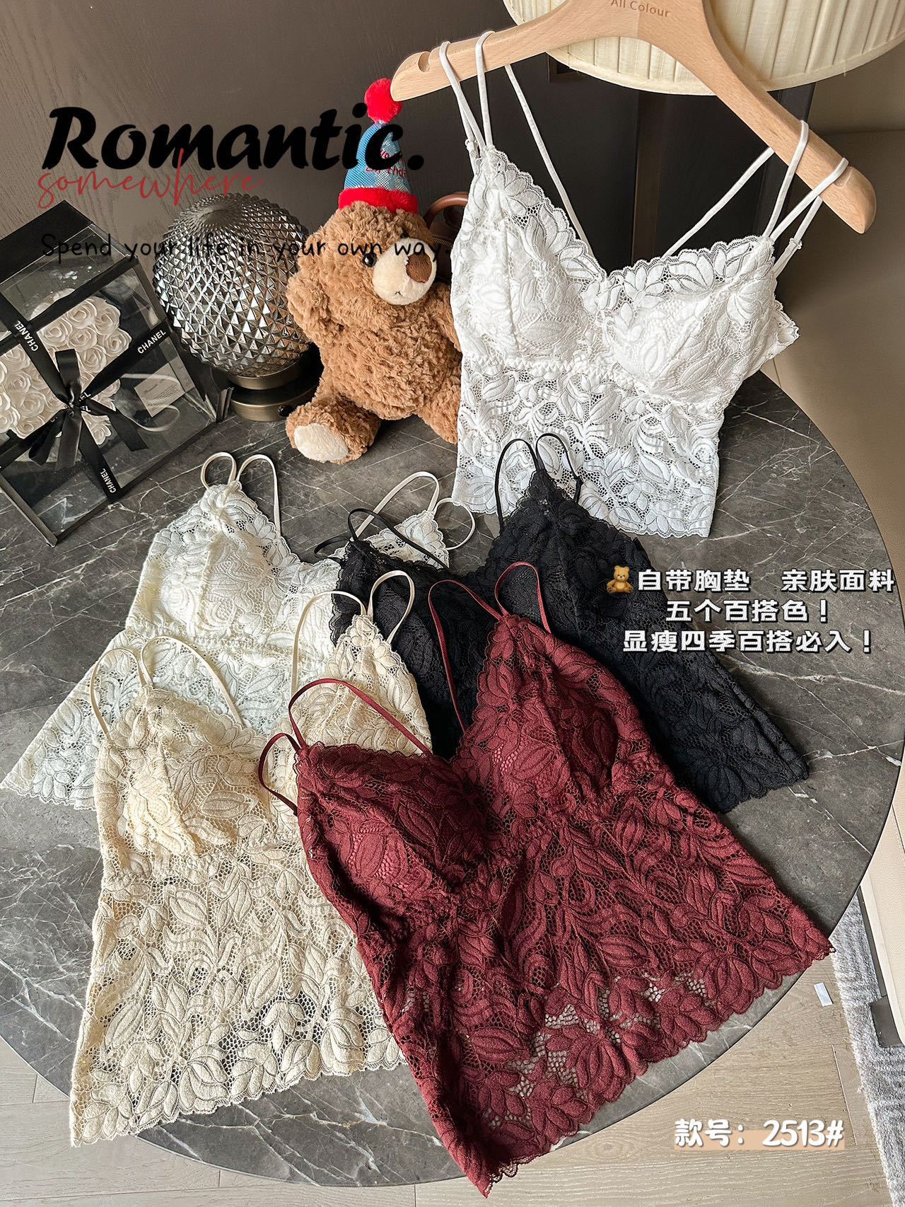 프렌치 섹시한 고정 컵 프렌치 깃털 레이스 중간 길이 캐미솔 v 넥 섹시한 다용도 여성 속옷
