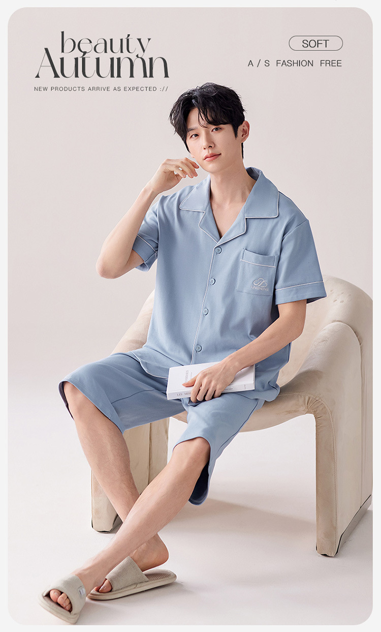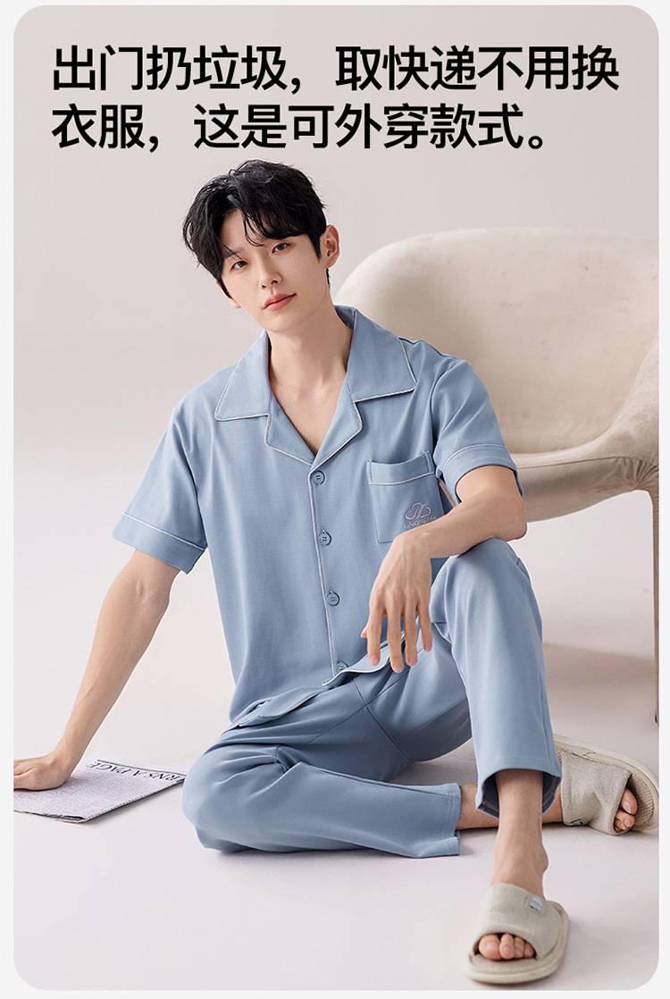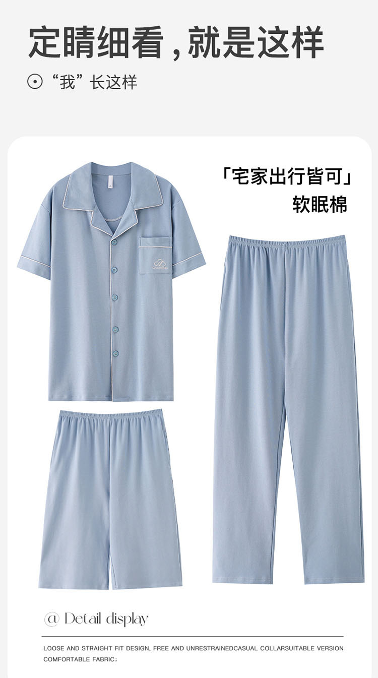 순면 잠옷 남성 여름 반팔 웨어러블 고급 셔츠 남성 홈웨어 3피스 슈트스토어 가기