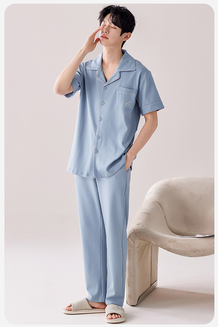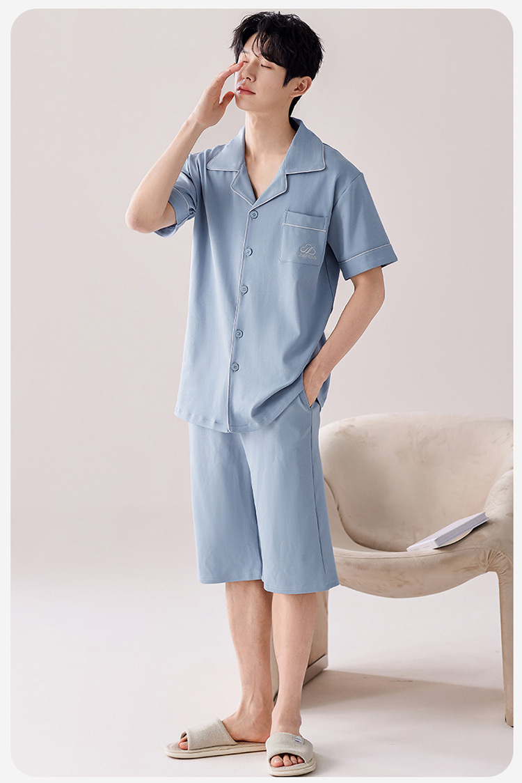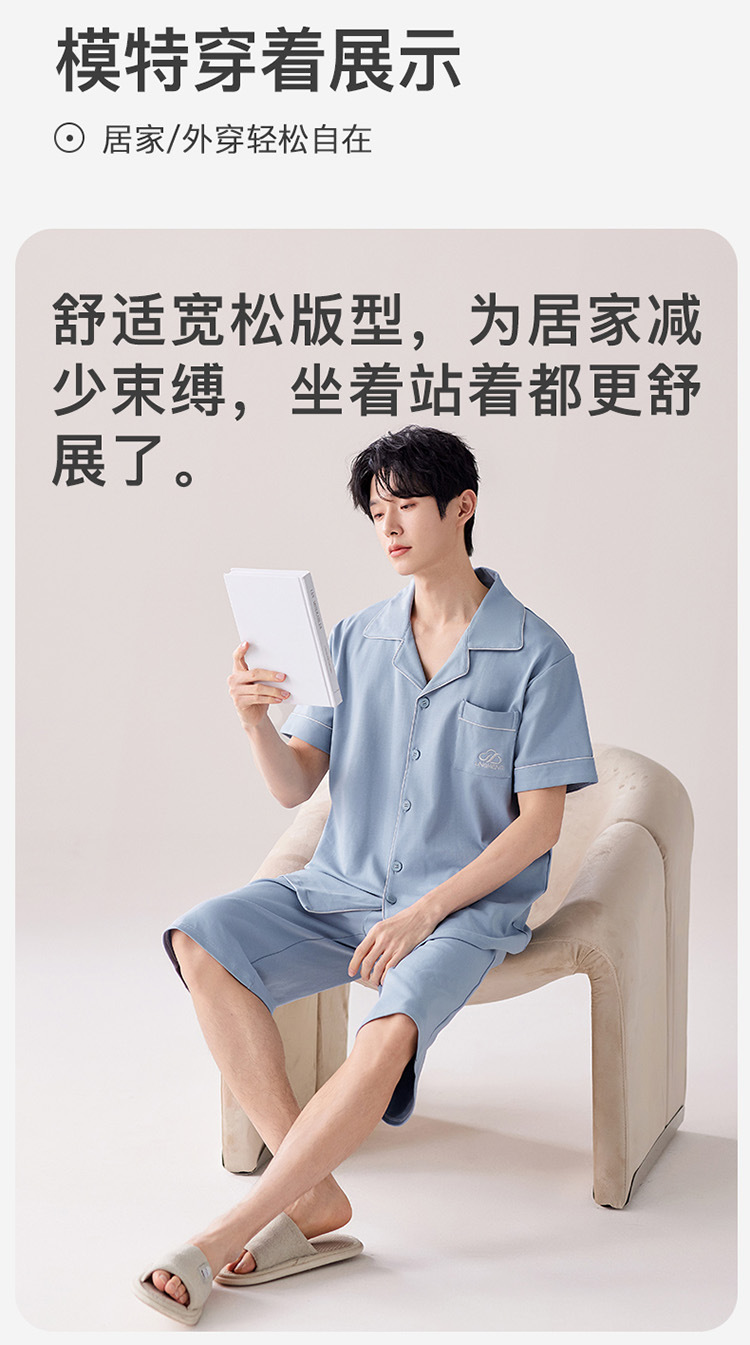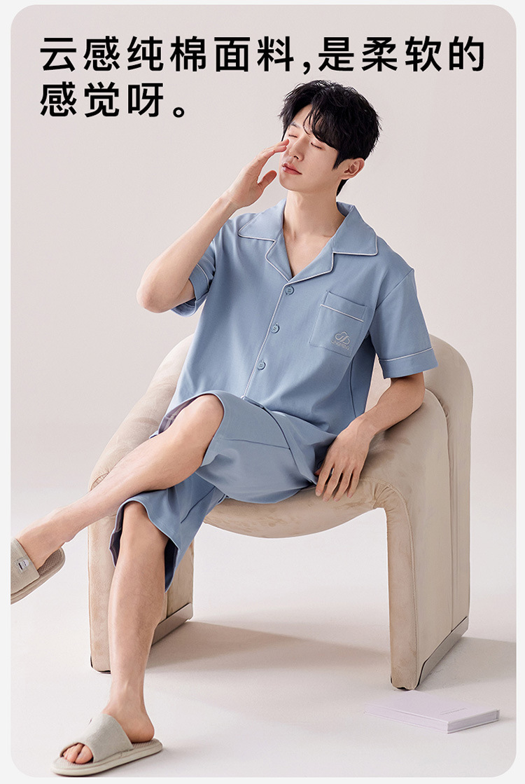 순면 잠옷 남성 여름 반팔 웨어러블 고급 셔츠 남성 홈웨어 3피스 슈트스토어 가기