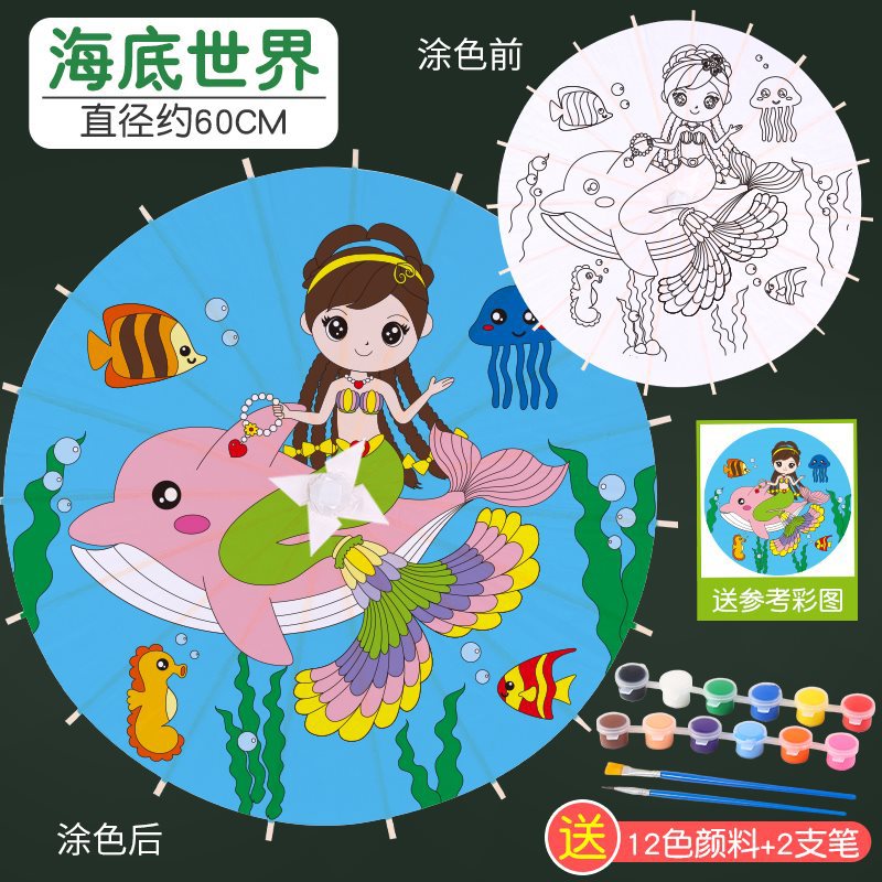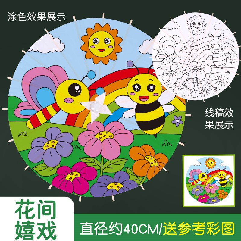 빈 오일 종이 우산 diy 손으로 그린 우산 재료 유치원 크리 에이 티브 어린이 손으로 그린 낙서 색칠 작은 우산스토어 가기