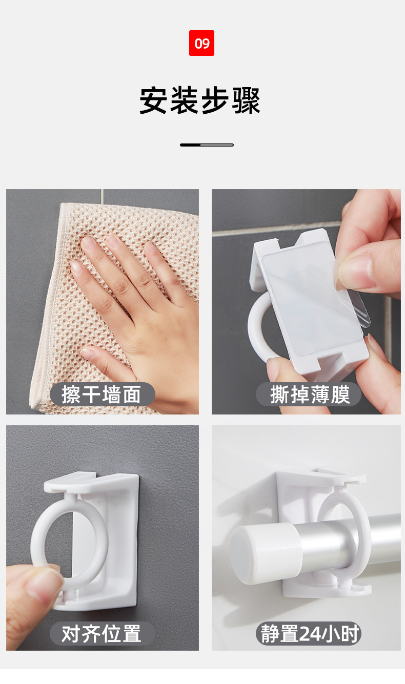 360도 회전 걸이 링 업그레이드된 링 걸이 막대 홀더 수건 막대 접착 후크 펀치 없는 커튼 샤워 커튼 막대 브래킷 브래킷