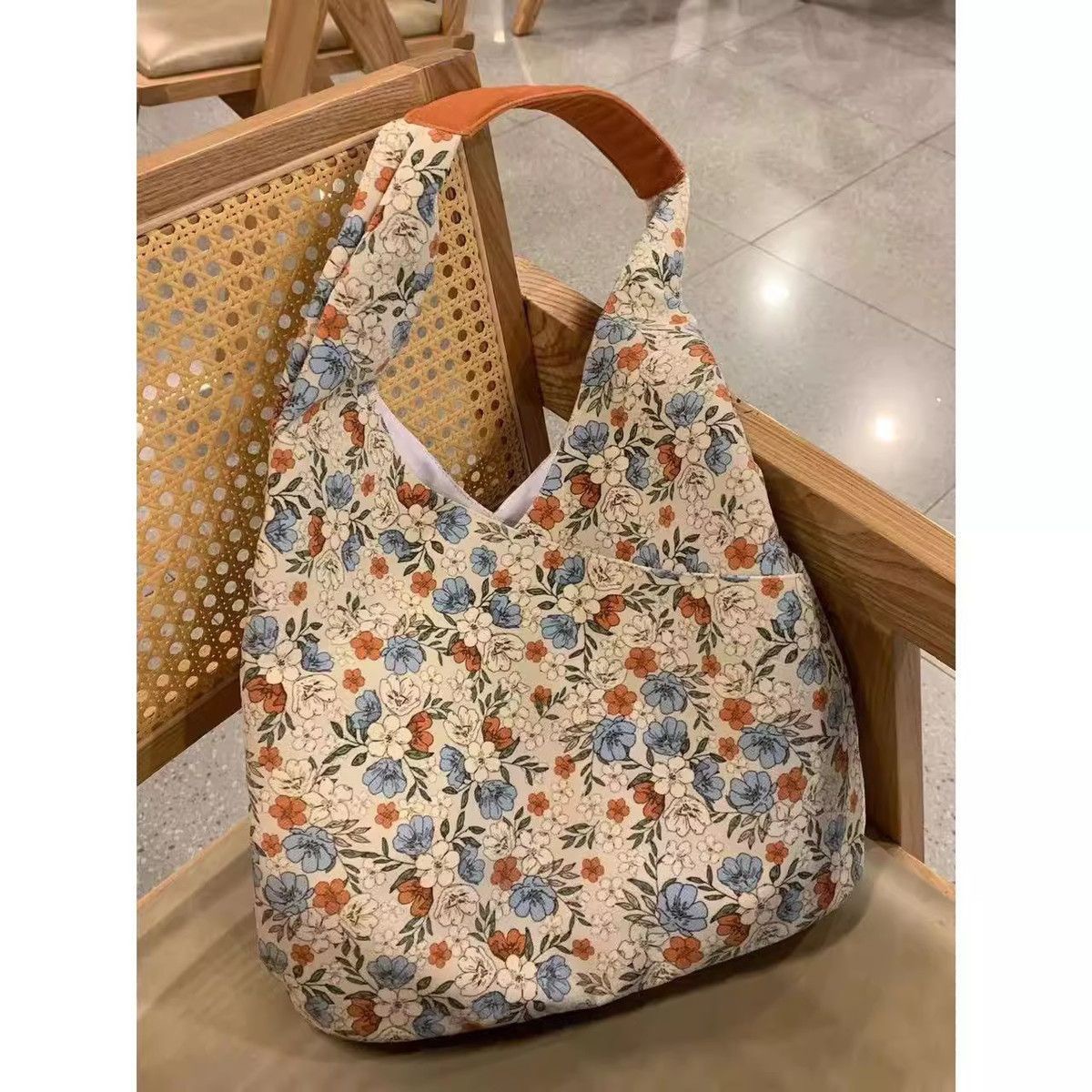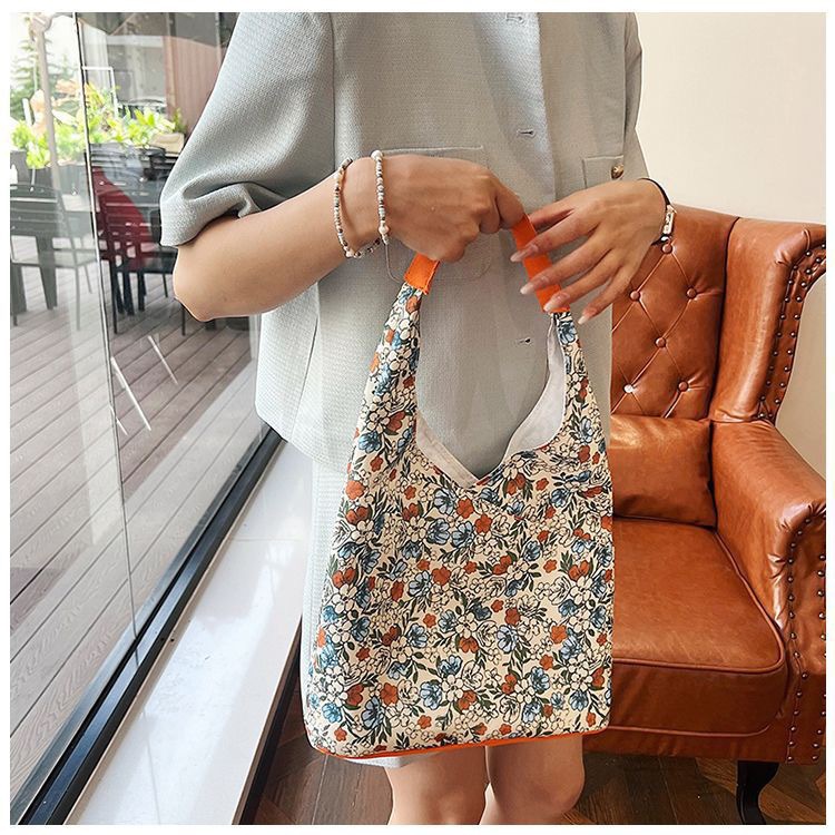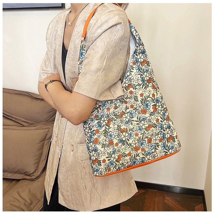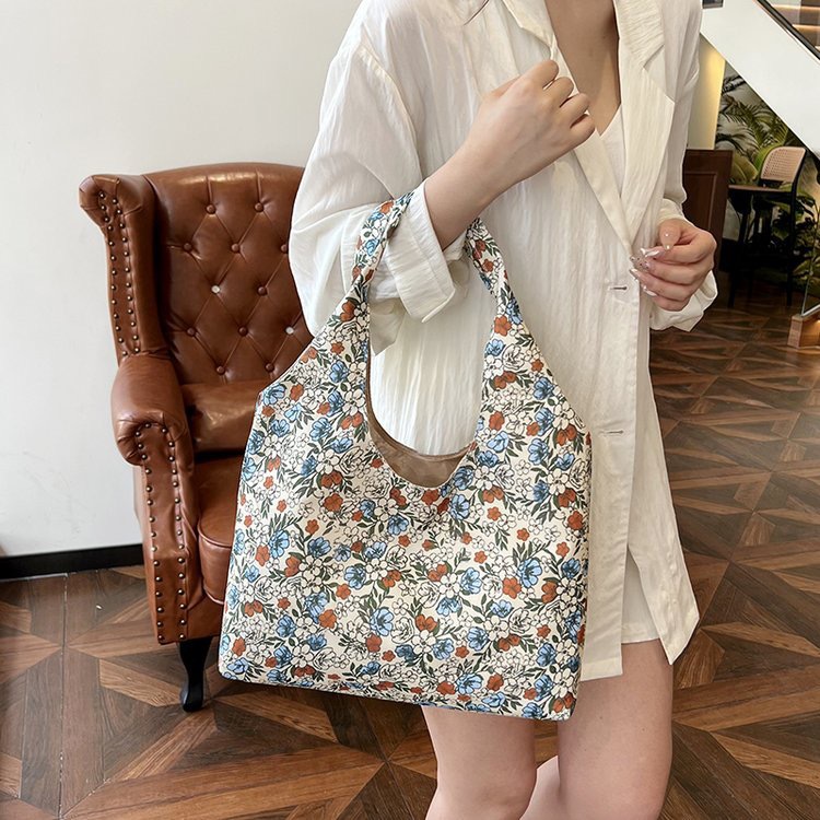Zzz 틈새 디자인 꽃 캔버스 가방 여성 2025 새로운 복고풍 어깨 대용량 가방스토어 가기