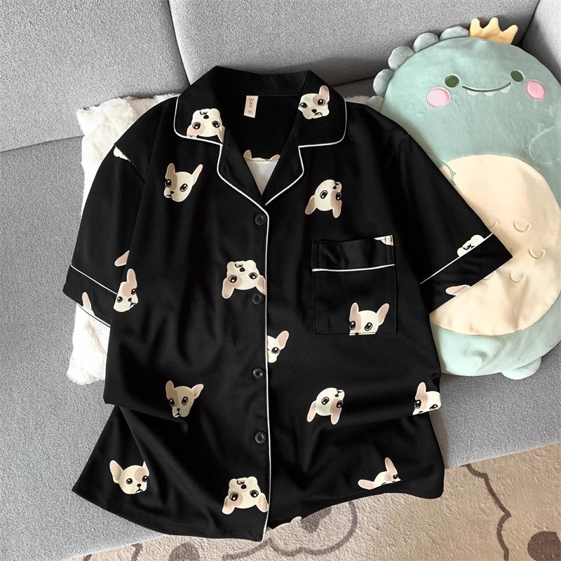 • 평직-검은색 강아지 [반팔+반바지+바지]