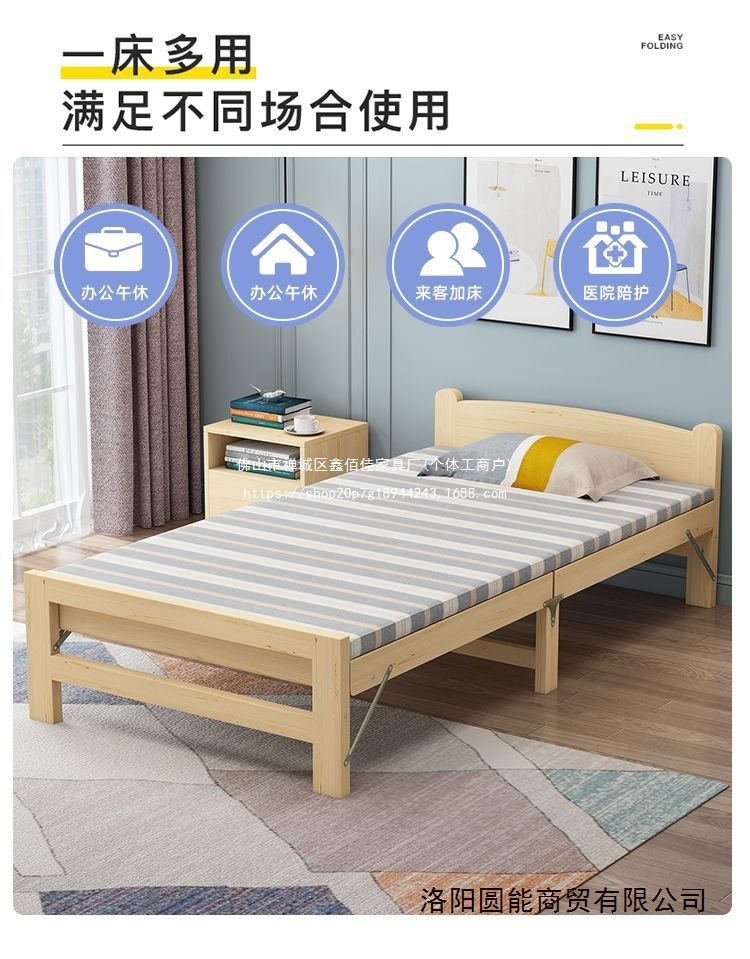 원목 접이식 침대 가정용 싱글 침대 1.2m 임대실 어린이 더블 침대 성인 낮잠 사무실 간이 침대스토어 가기