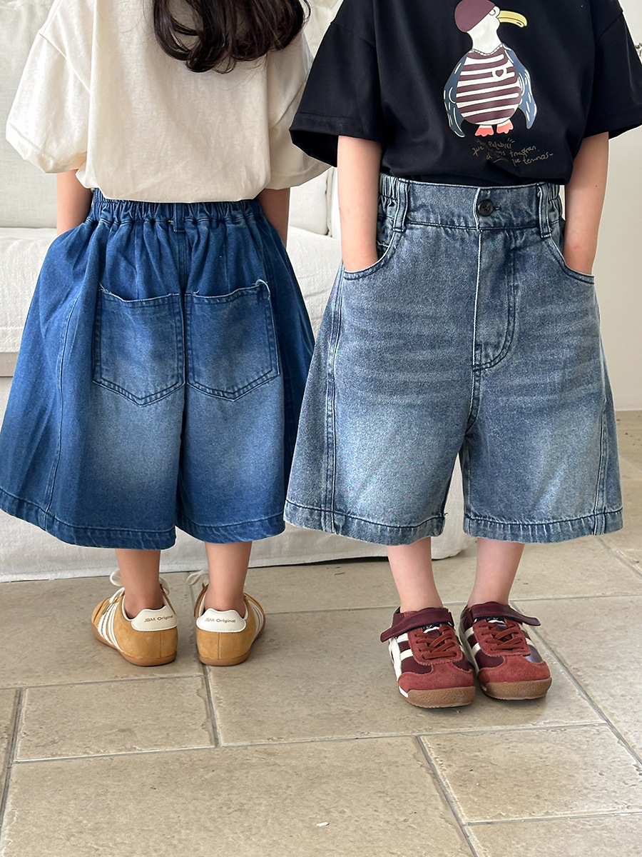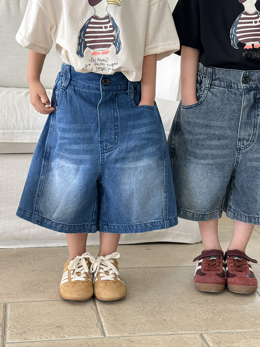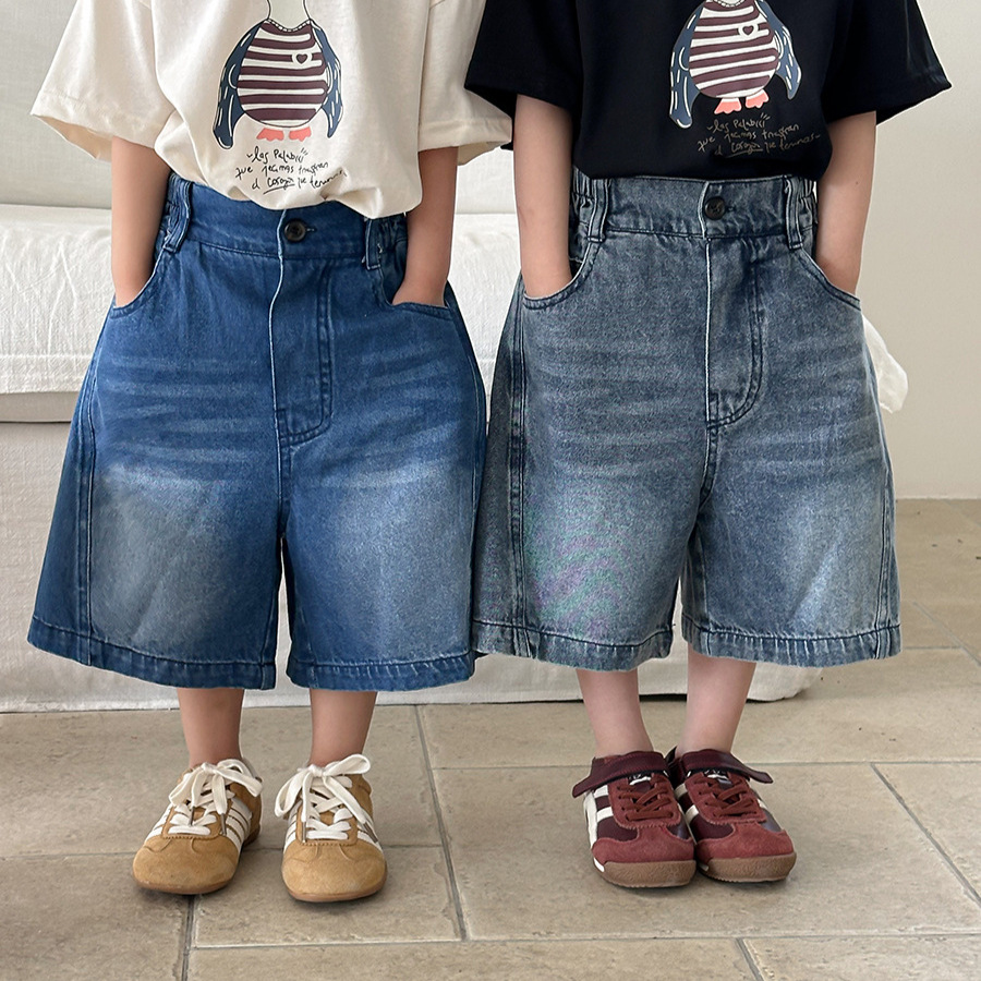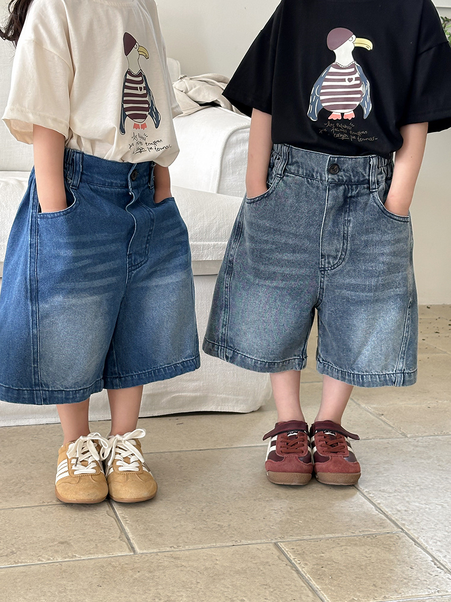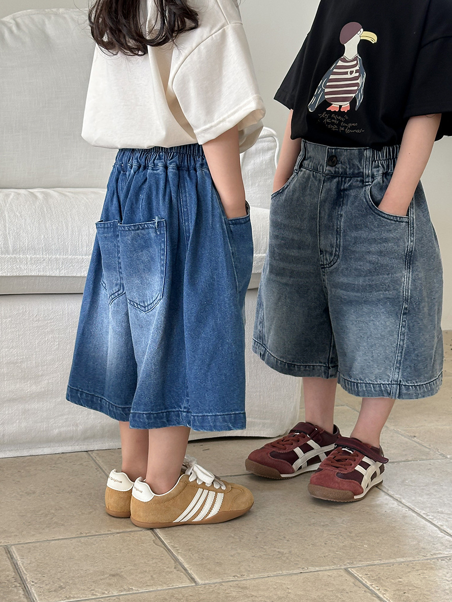 Jiaye 어린이 2025 년 어린이 여름 신입 화이트 청바지 아기 소년 소녀 느슨한 바지 5 점 바지