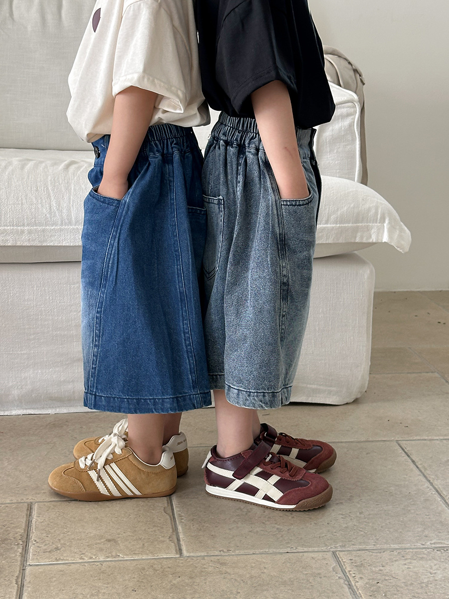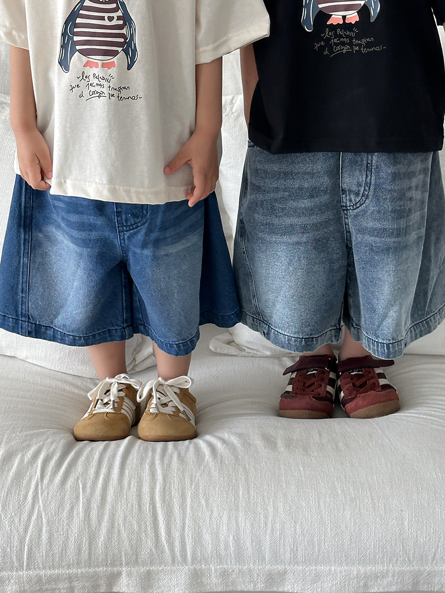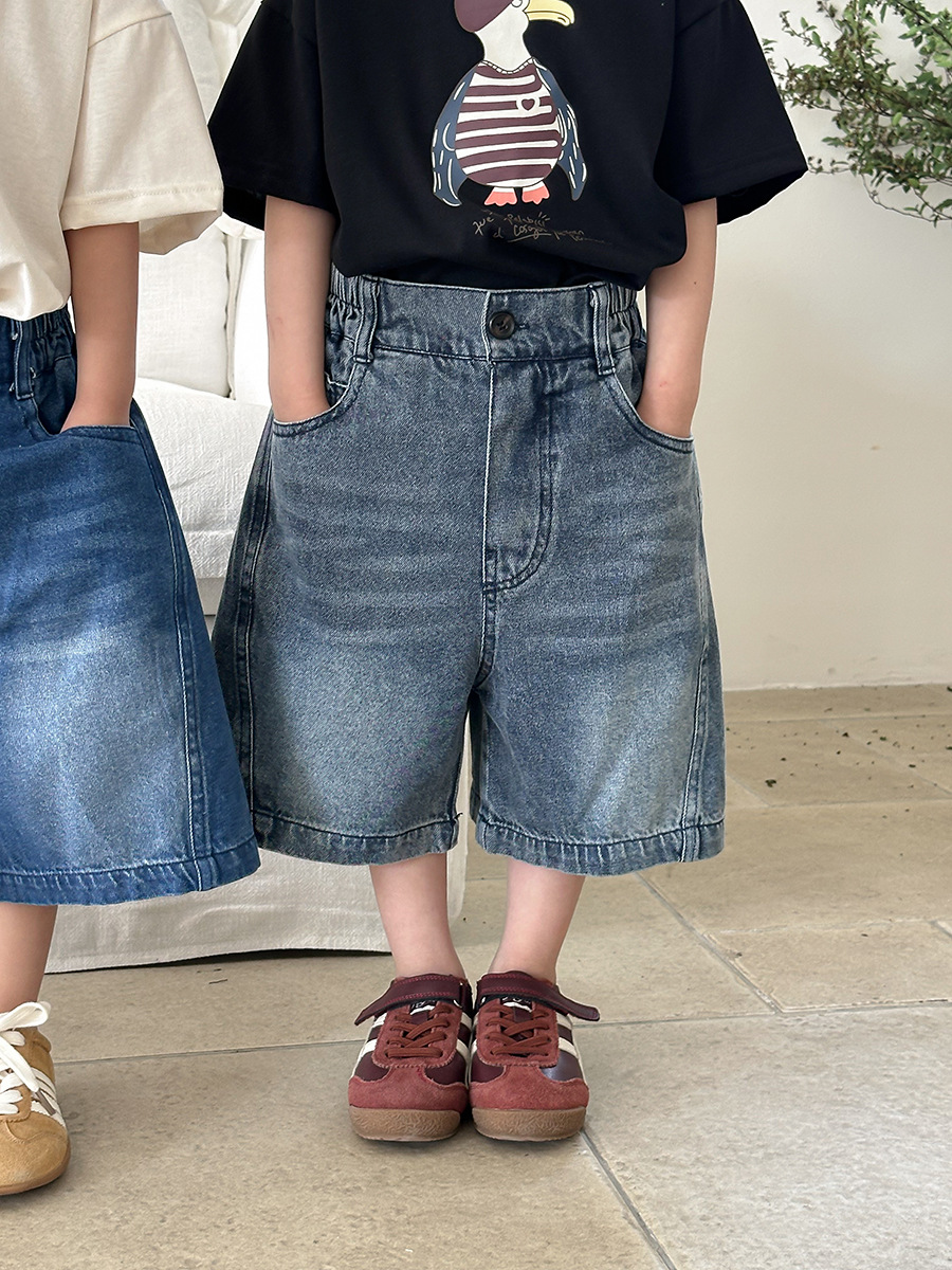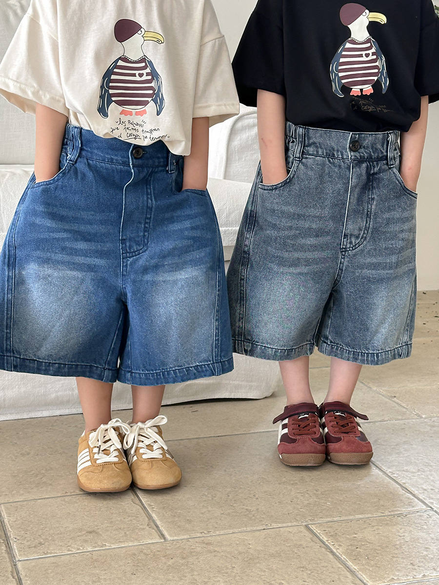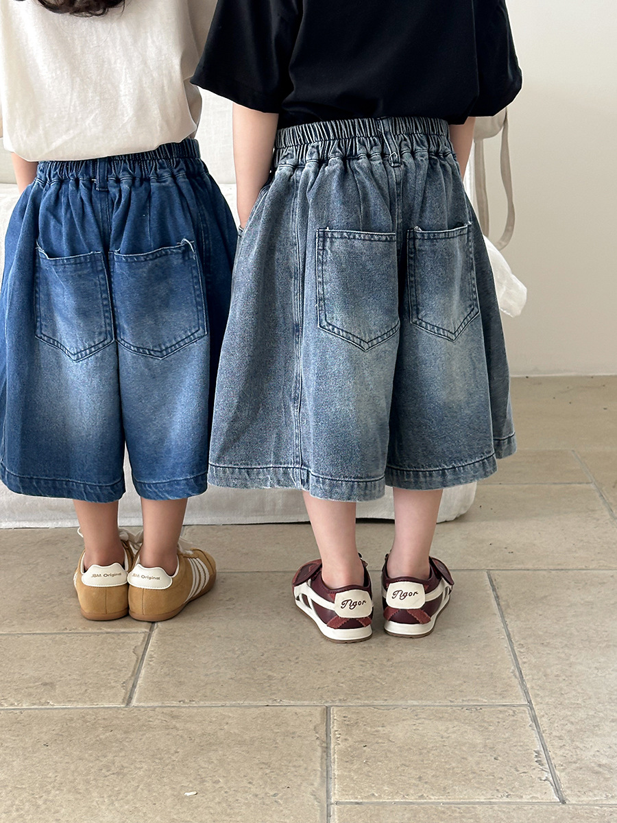 Jiaye 어린이 2025 년 어린이 여름 신입 화이트 청바지 아기 소년 소녀 느슨한 바지 5 점 바지