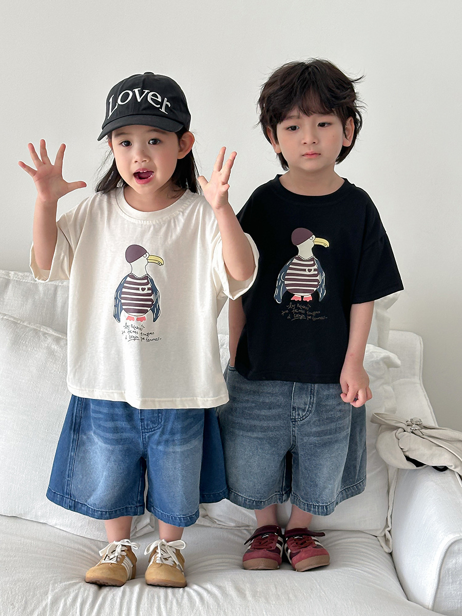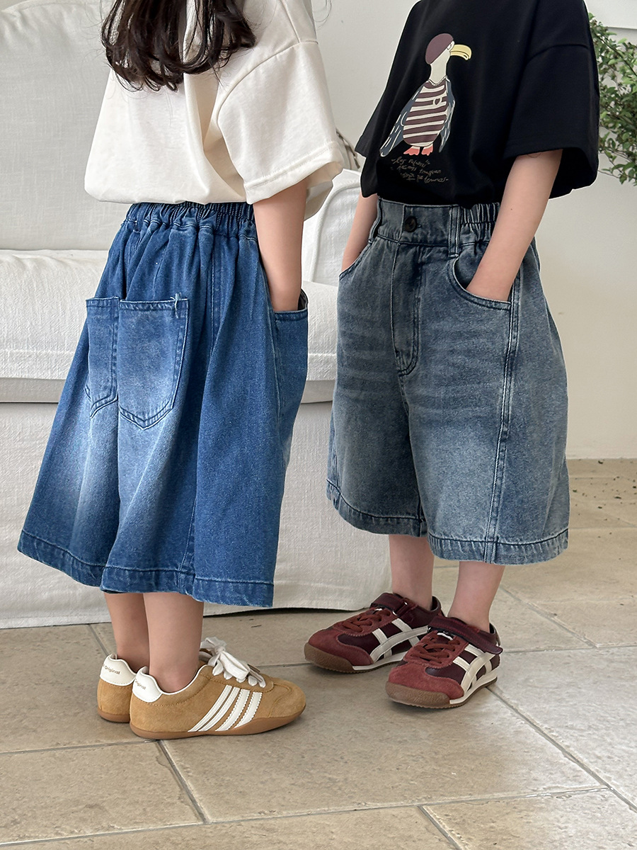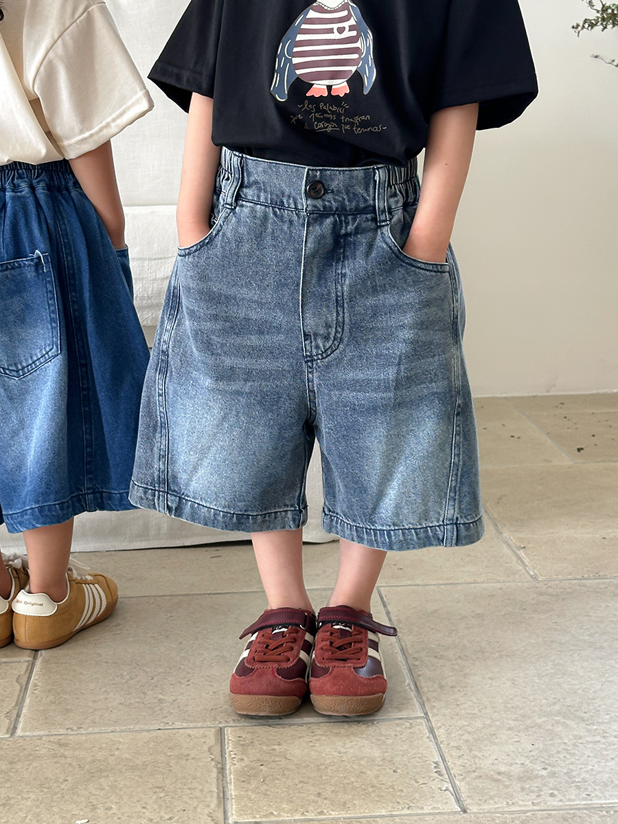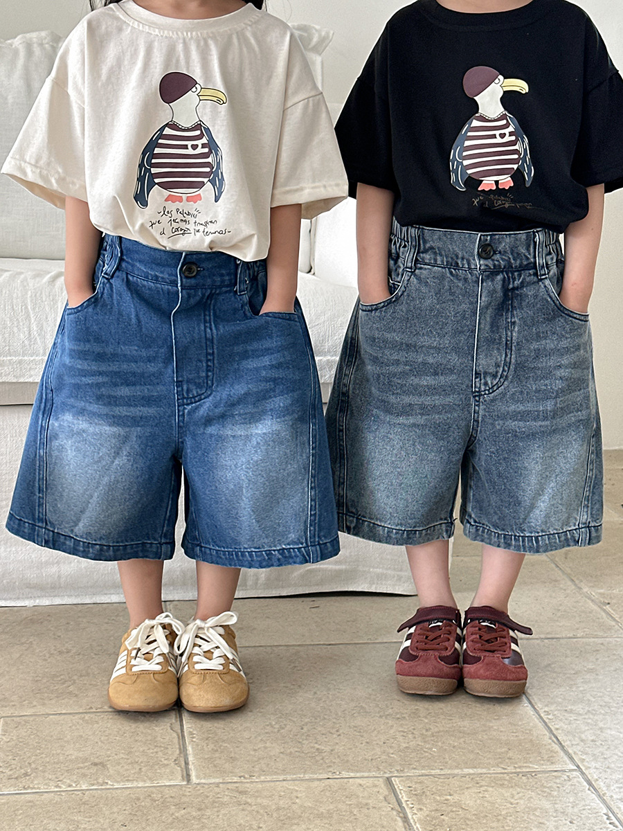 Jiaye 어린이 2025 년 어린이 여름 신입 화이트 청바지 아기 소년 소녀 느슨한 바지 5 점 바지스토어 가기