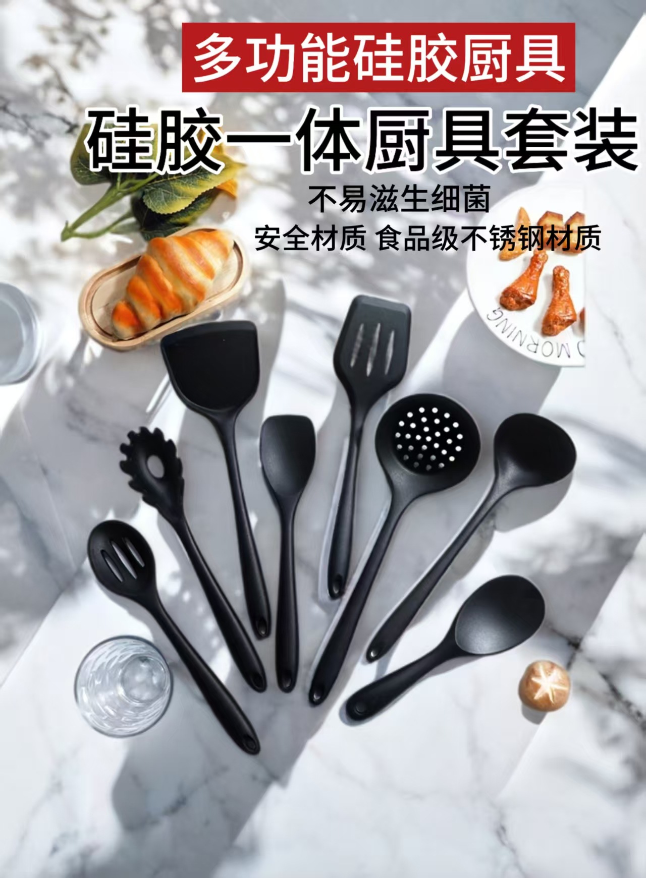 스팟 도매 실리콘 주걱 및 스푼 세트, 붙지 않는 특수 실리콘 주걱, 가정용 고온 방지 실리콘 주방 용품스토어 가기