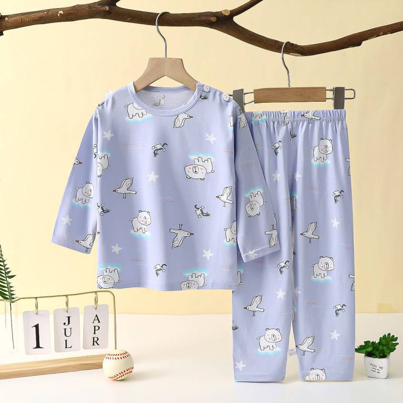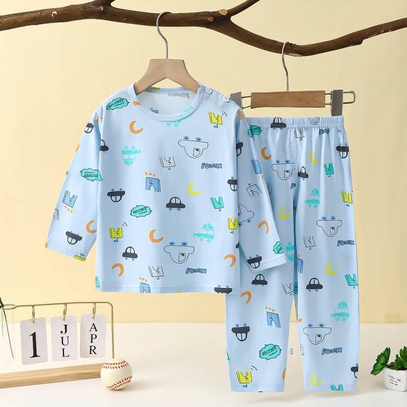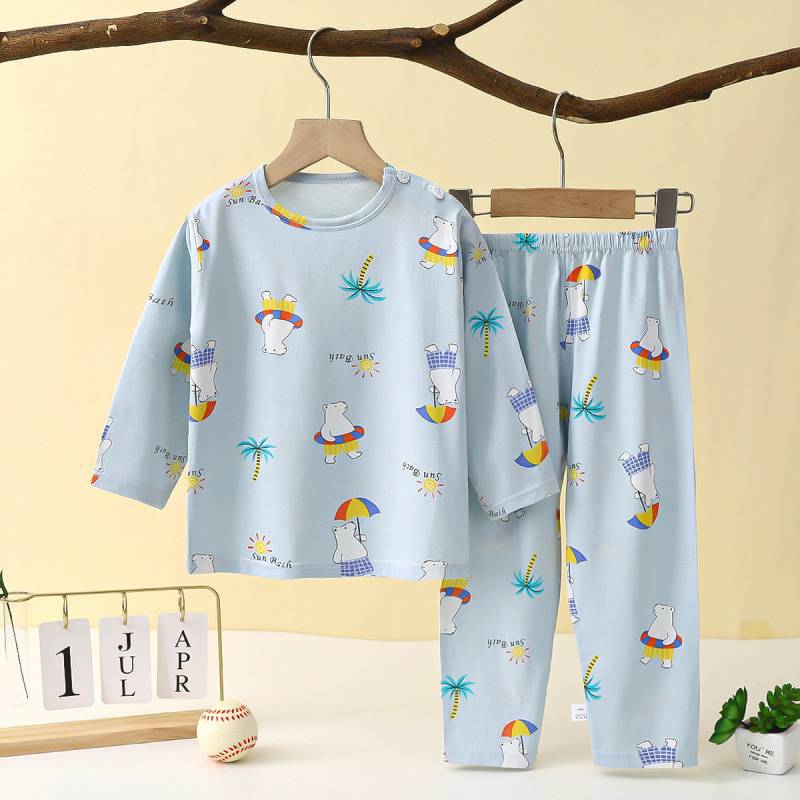 아동복, 여름용 얇은 남아 및 여아용 긴팔 양복, 대형 아동용 에어컨 양복, 여름용 아기 잠옷