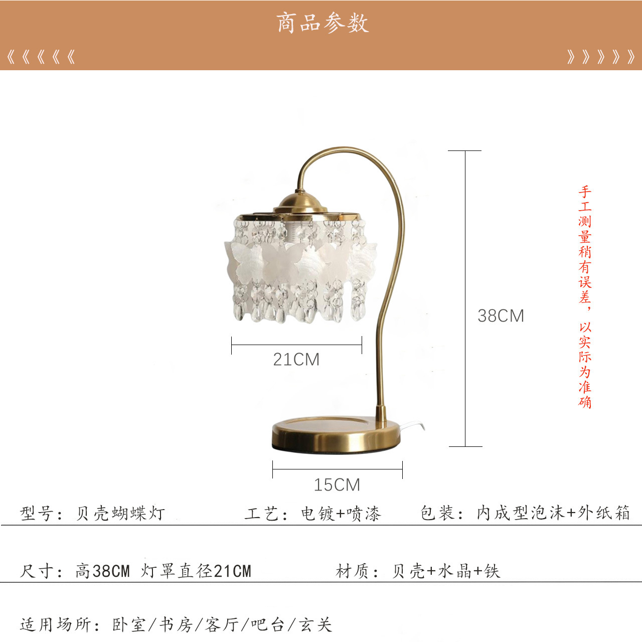 프랑스 레트로 쉘 테이블 램프 침실 침실 램프 따뜻한 로맨틱 장식 천연 쉘 크리스탈 테이블 램프스토어 가기