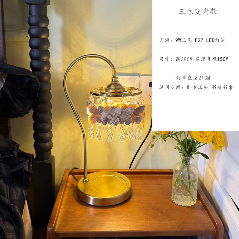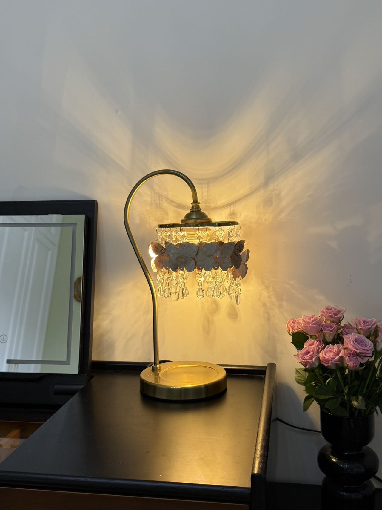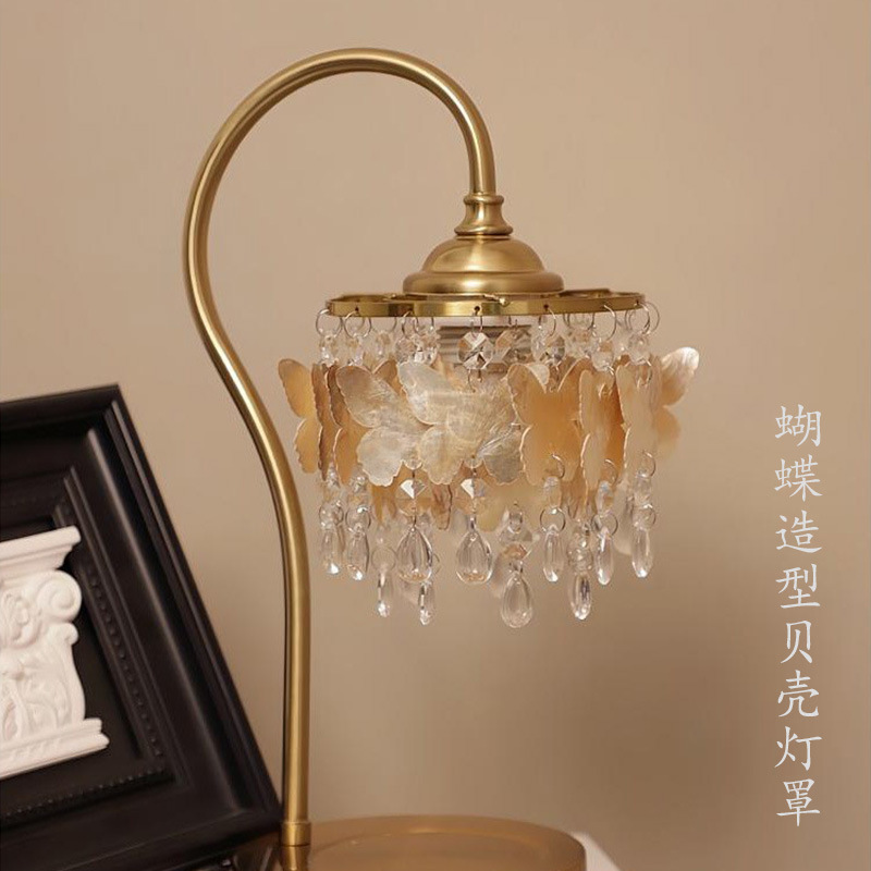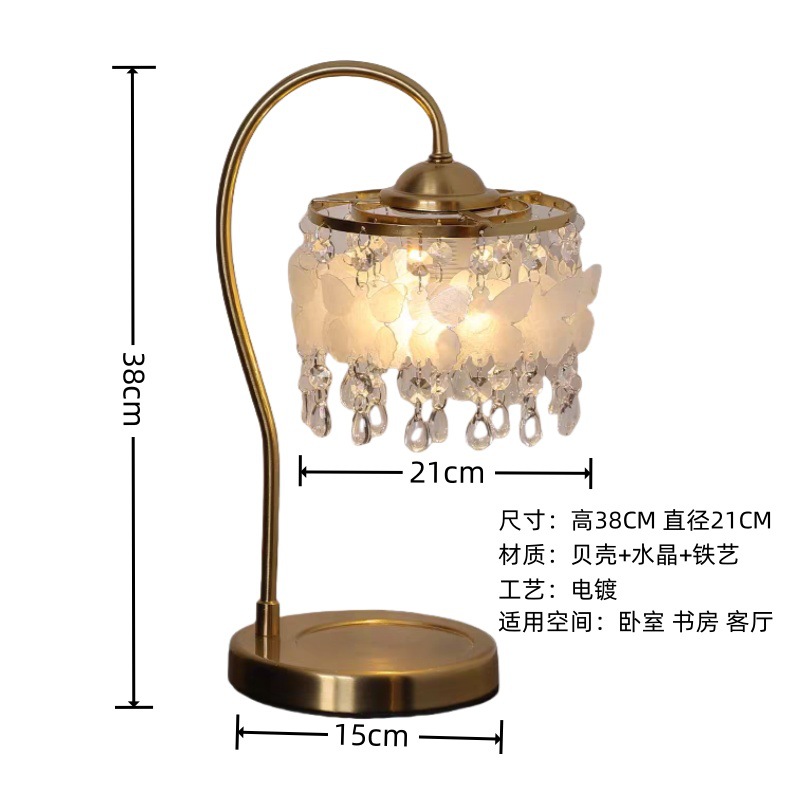 프랑스 레트로 쉘 테이블 램프 침실 침실 램프 따뜻한 로맨틱 장식 천연 쉘 크리스탈 테이블 램프