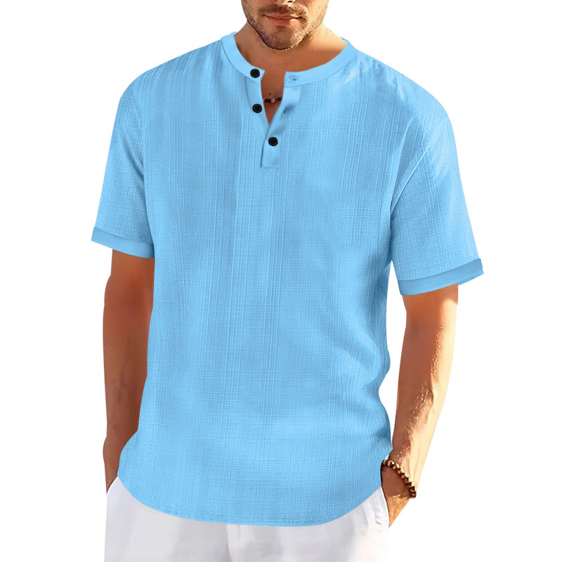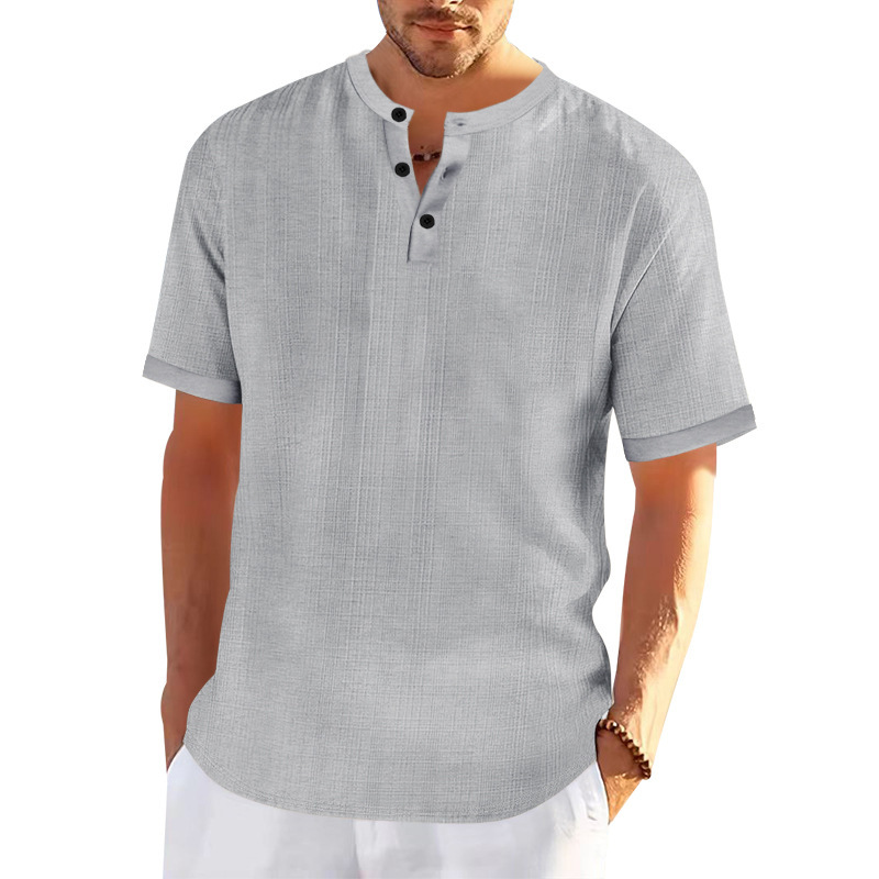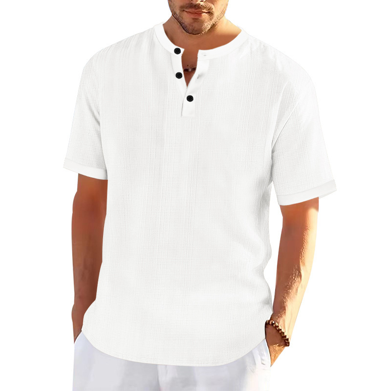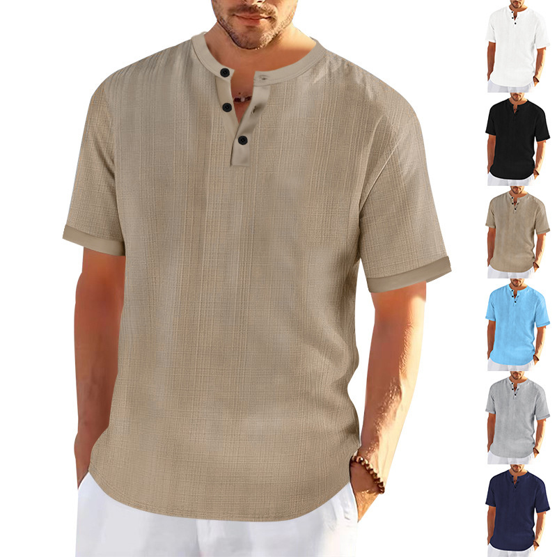 产品风格,夏季美式宽松竹节亨利衫短袖