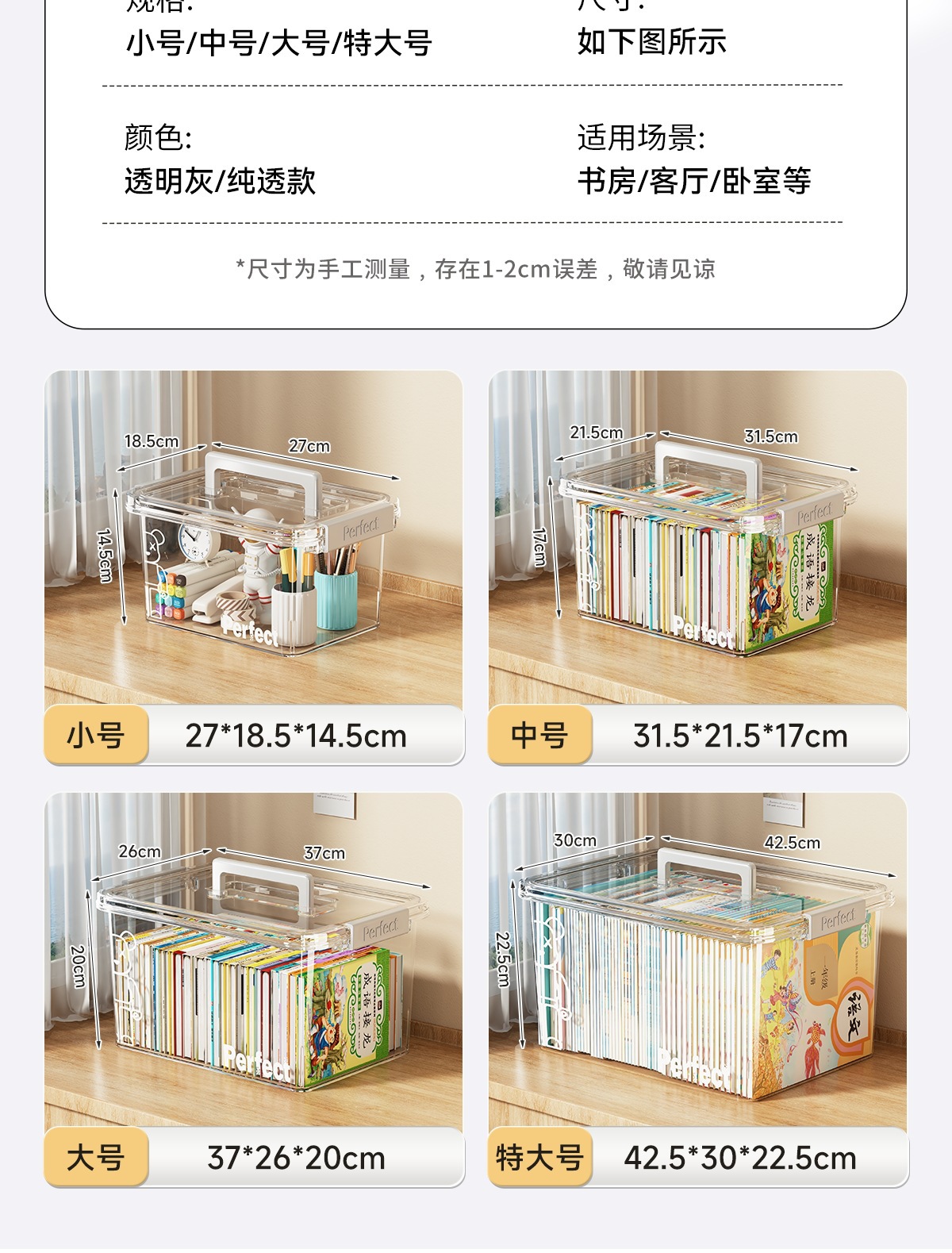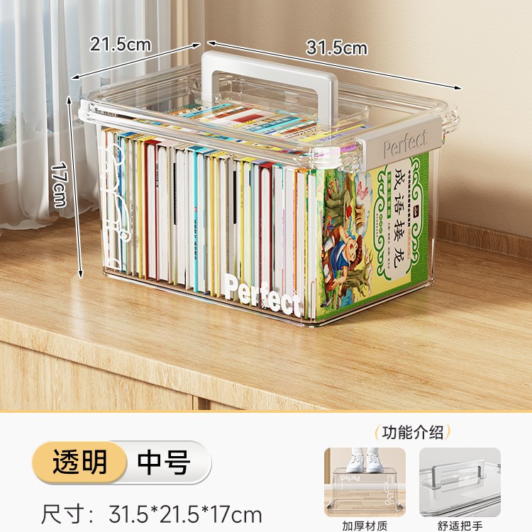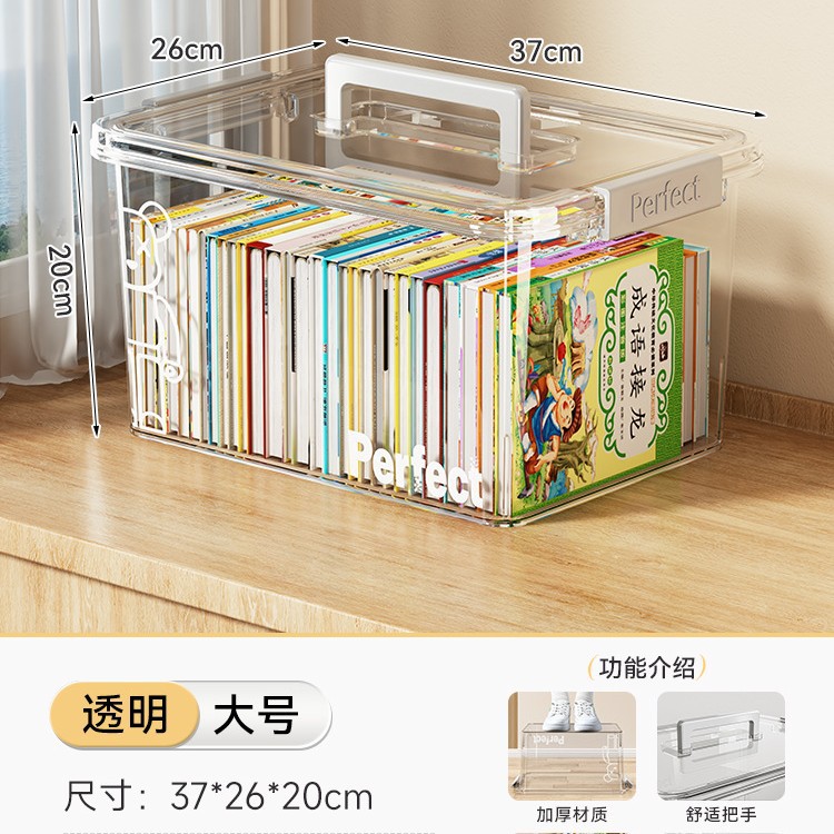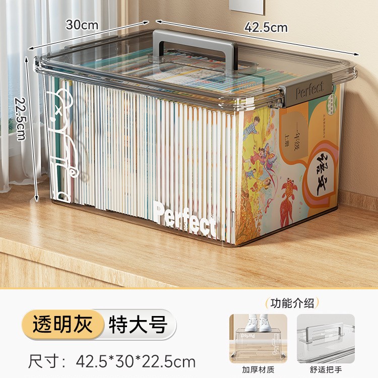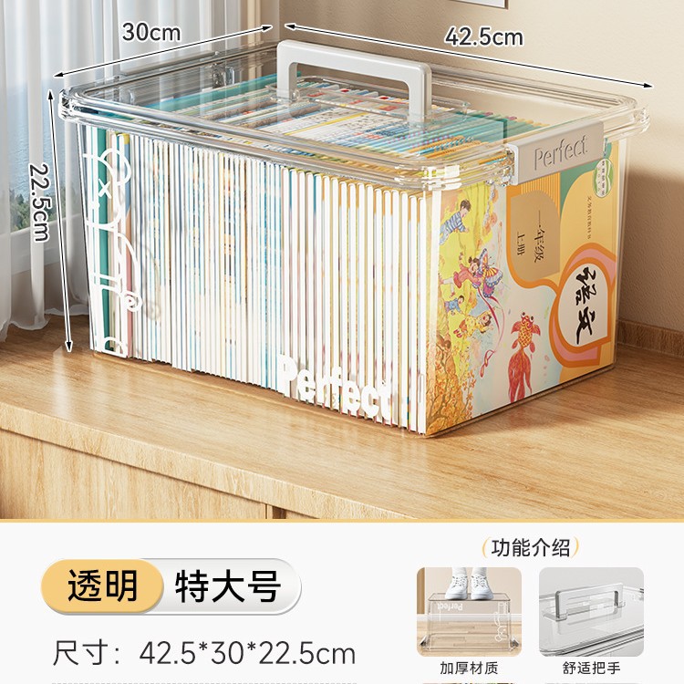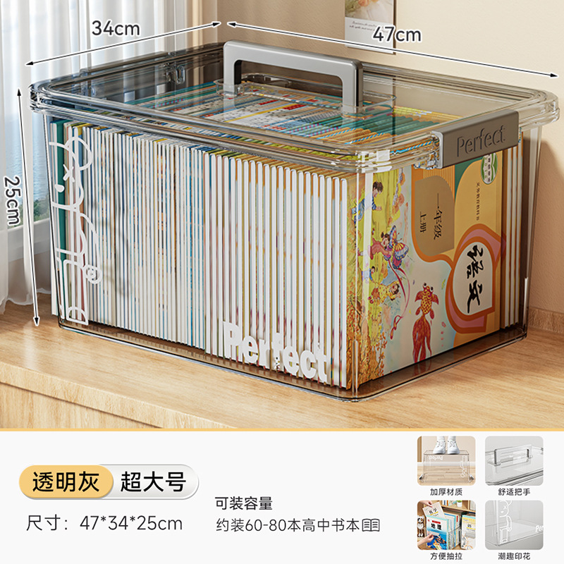 • 투명 - 크기 업그레이드 [길이 47*너비 34*높이 25cm] 고등학교 서적 60-80권 보관 가능