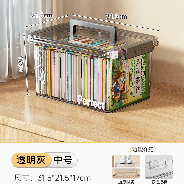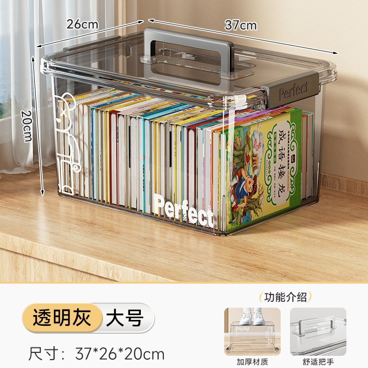 • 투명 그레이-중형 [길이 31.5*가로 21.5*높이 17cm] 어린이용 책 20~30권 수납 가능
