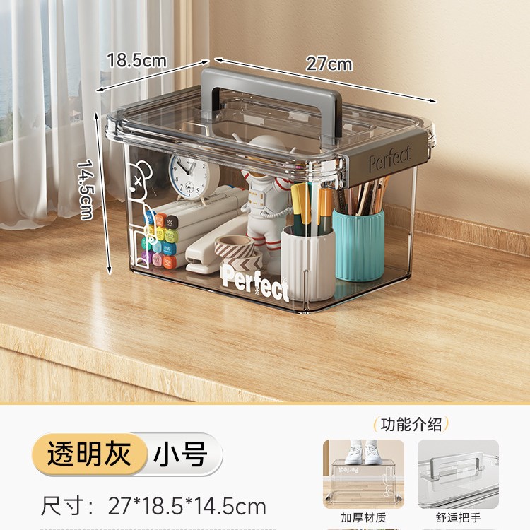 • 투명 회색-소형 [길이 27*가로 18.5*높이 14.5cm] 펜 홀더/스테이플러 수용 가능