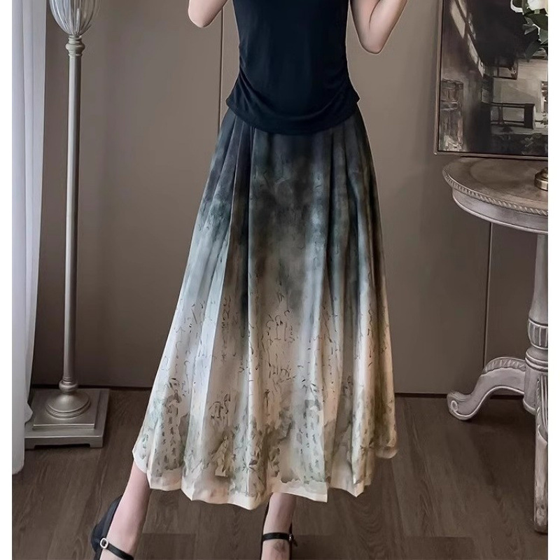 2024년 여름 신작 티셔츠 캐주얼 신상 중국 잉크 말 얼굴 정장 스커트 여성 스커트 패션 투피스 세트
