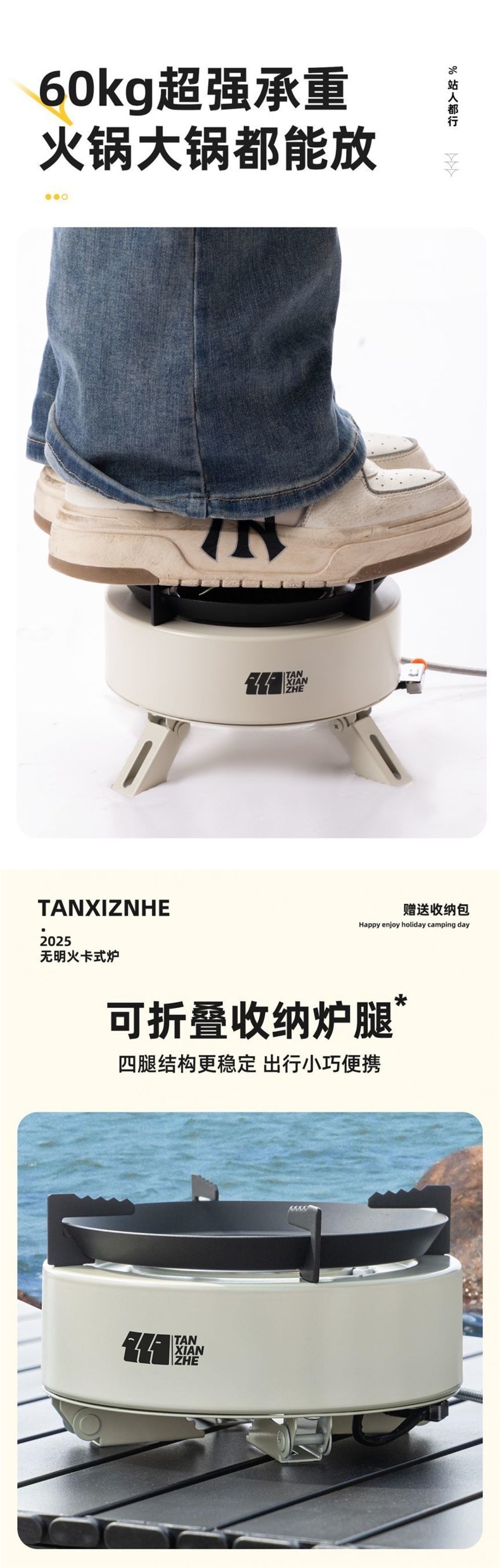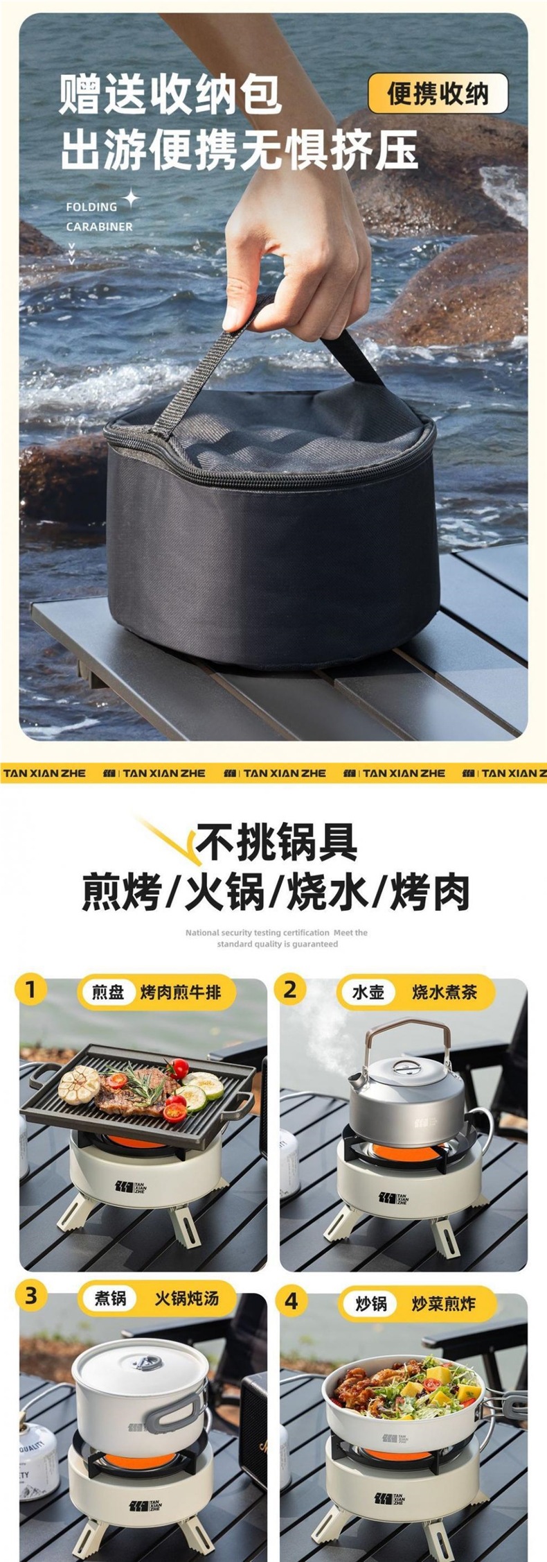 • 무염 방풍 스토브 - 새로 업그레이드된 무염 차 스토브에는 어댑터와 보관 가방이 함께 제공됩니다.
