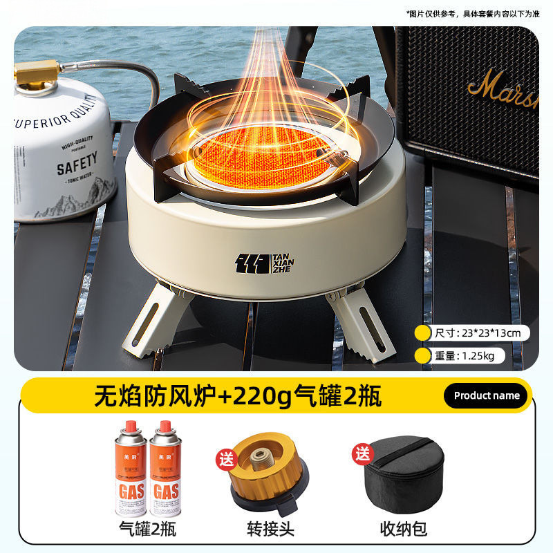 • 무염 방풍 스토브 + 220g 가스 탱크 2병 - 새로 업그레이드된 무염 차 스토브, 모든 시리즈에는 어댑터 및 보관 가방이 함께 제공됩니다.