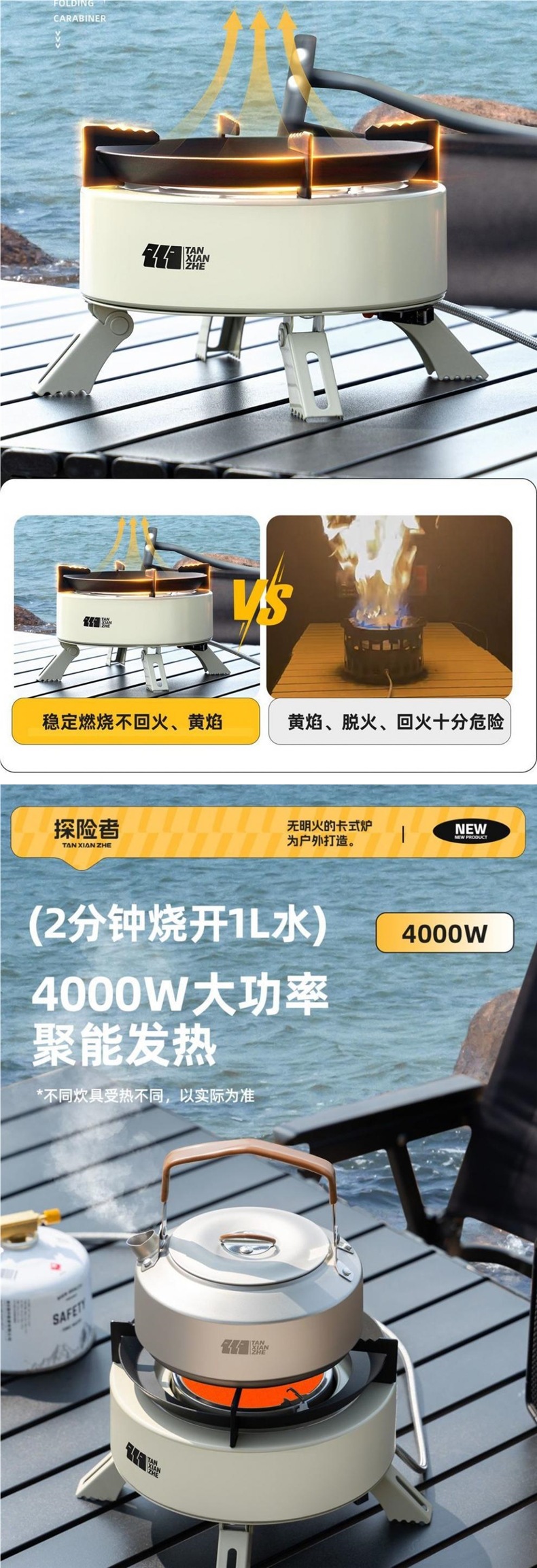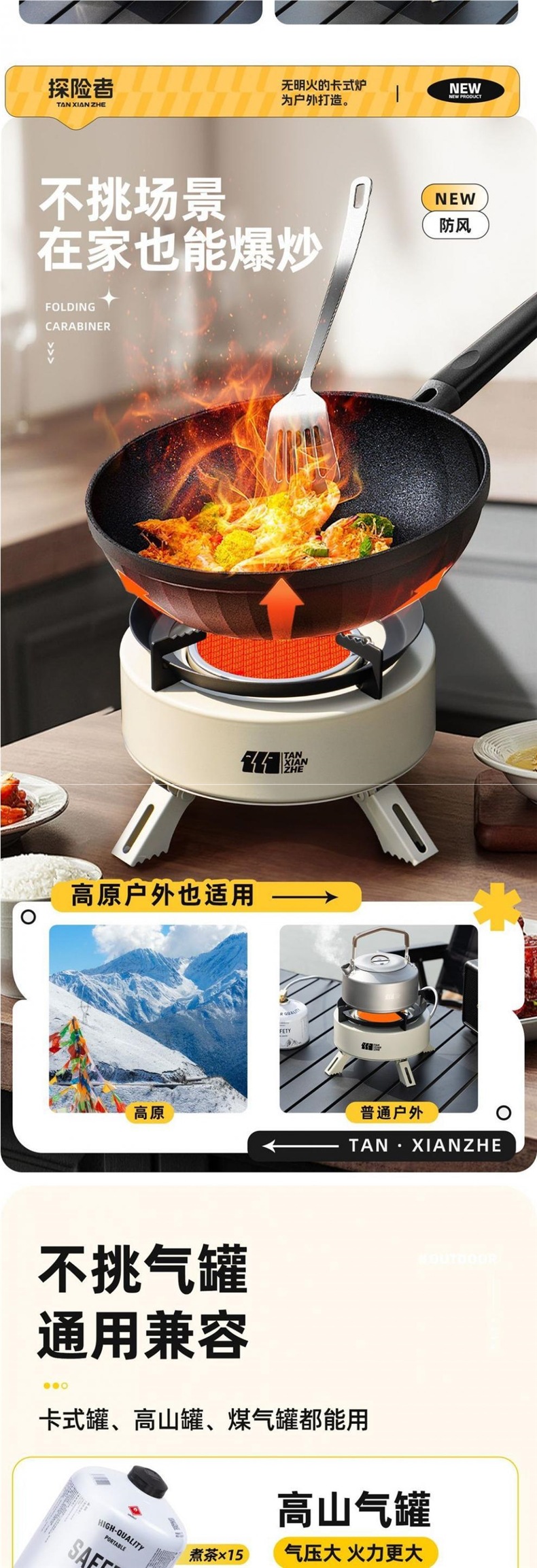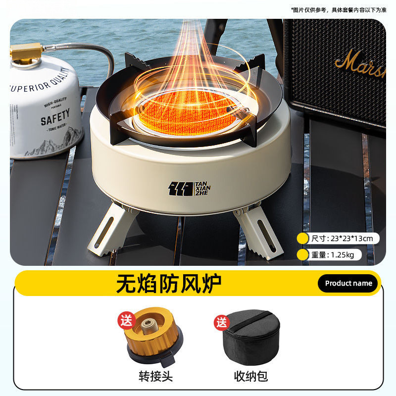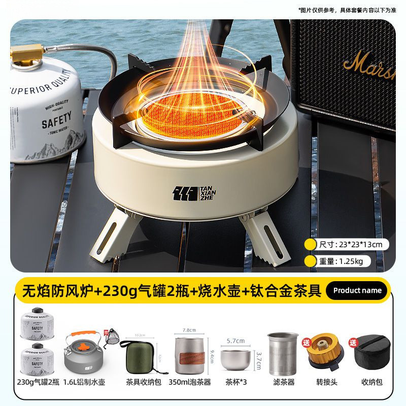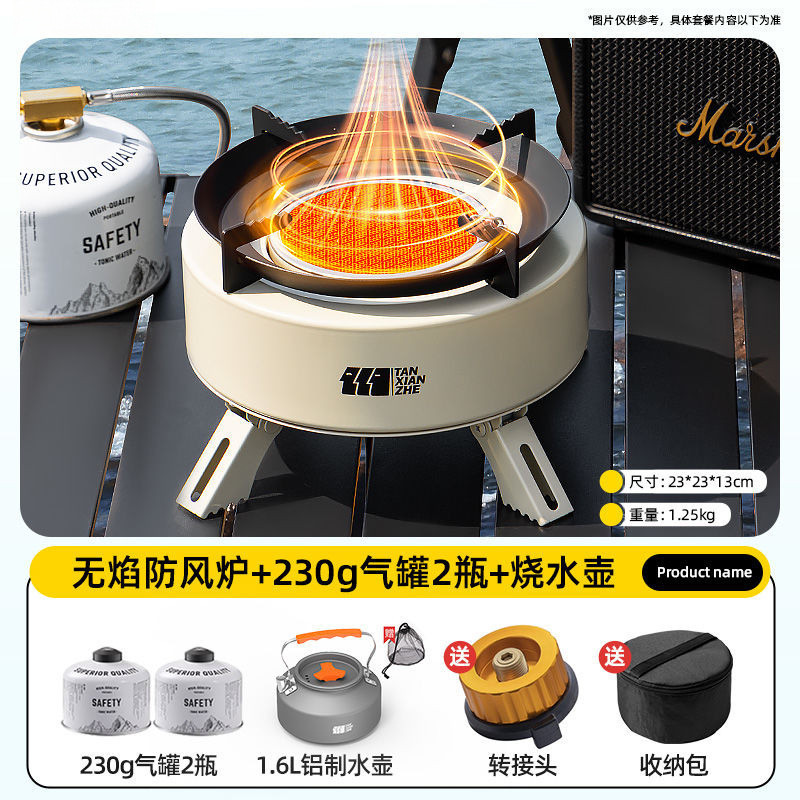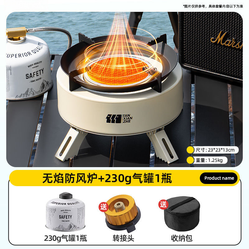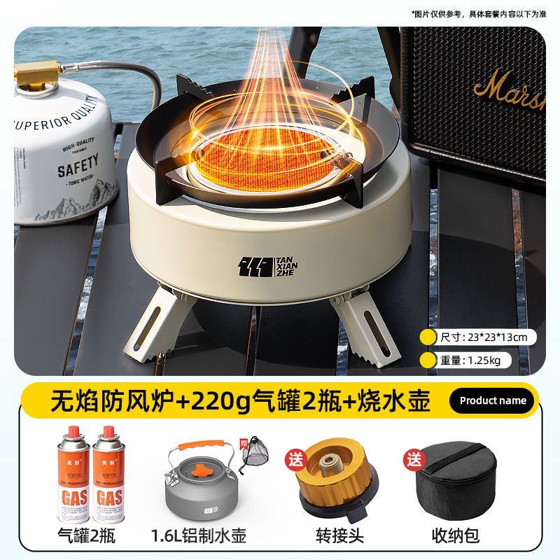 • 무염 방풍 스토브 + 230g 가스 탱크 1병 - 새로 업그레이드된 무염 차 스토브, 모든 시리즈에는 어댑터 및 보관 가방이 함께 제공됩니다.