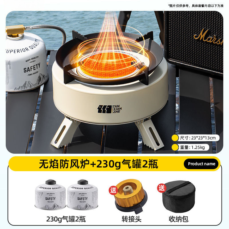 • 무염 방풍 스토브 + 230g 가스 탱크 2병 - 새로 업그레이드된 무염 차 스토브, 모든 시리즈에는 어댑터 및 보관 가방이 함께 제공됩니다.