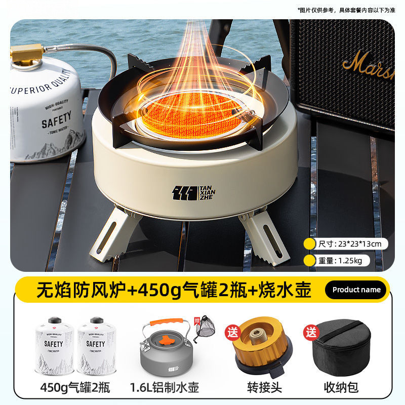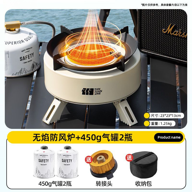 • 무염 방풍 스토브 + 450g 가스 탱크 2병 - 새로 업그레이드된 무염 차 스토브, 모든 시리즈에는 어댑터 및 보관 가방이 함께 제공됩니다.