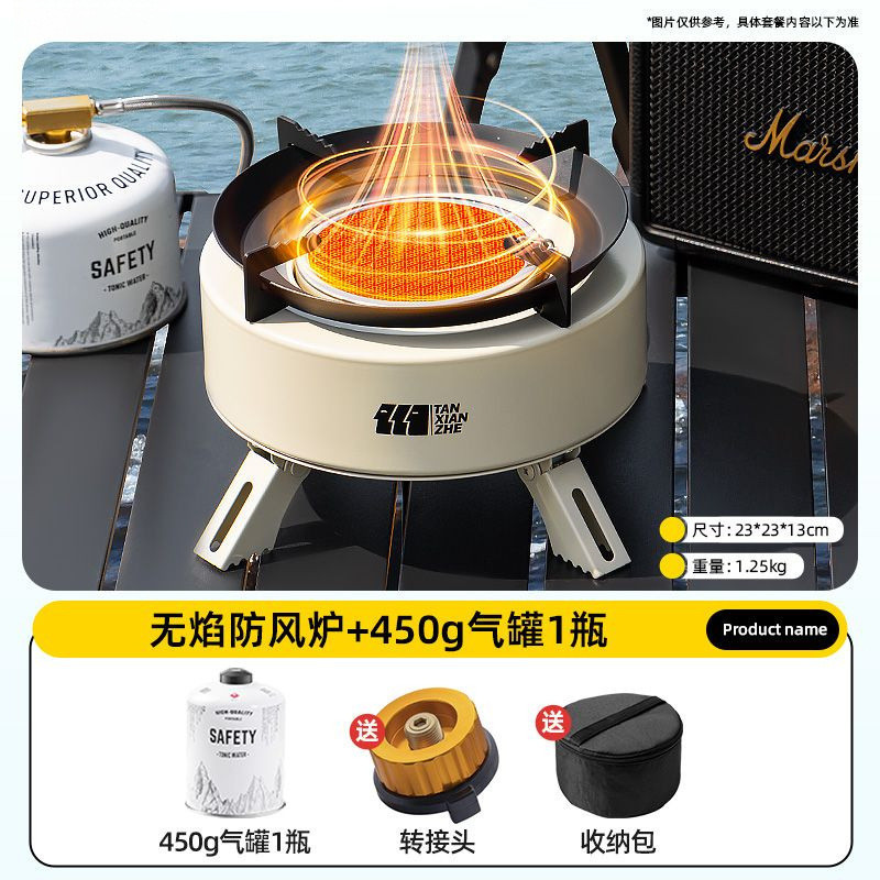 • 무염 방풍 스토브 + 450g 가스 탱크 1병 - 새로 업그레이드된 무염 차 스토브, 모든 시리즈에는 어댑터 및 보관 가방이 함께 제공됩니다.