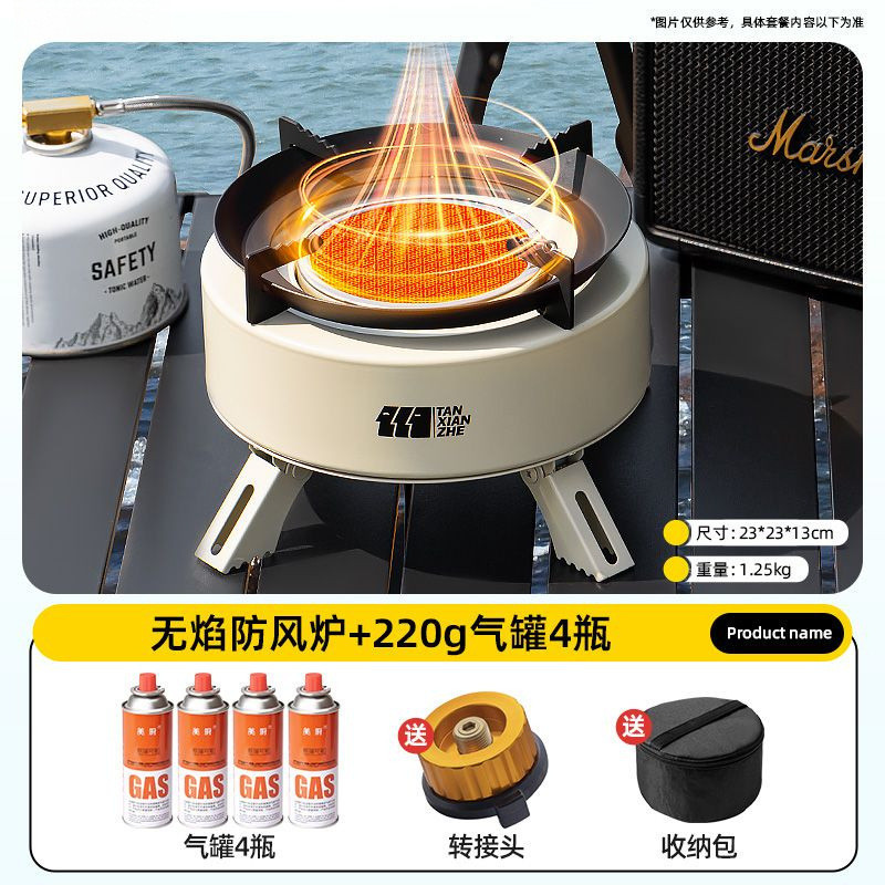 • 무염 방풍 스토브 + 220g 가스 탱크 4병 - 새로 업그레이드된 무염 차 스토브, 모든 시리즈에는 어댑터 및 보관 가방이 함께 제공됩니다.