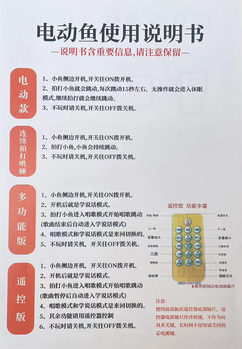 • Red Carp [원격 제어 버전]은 점프 + 단어 학습 + 빛나기 + 노래 + 원격 제어가 가능합니다.----일상적인 플레이에 권장