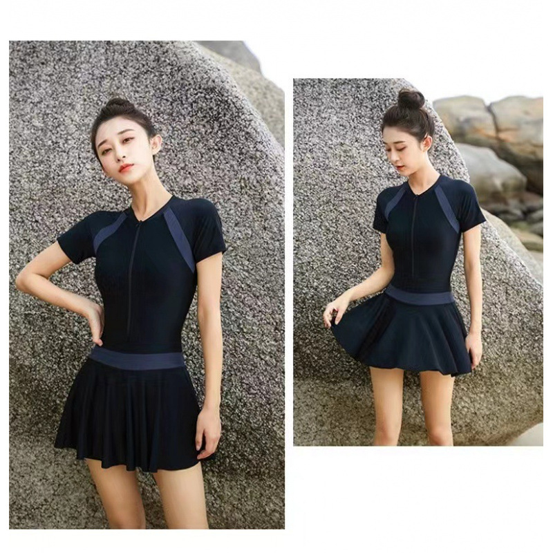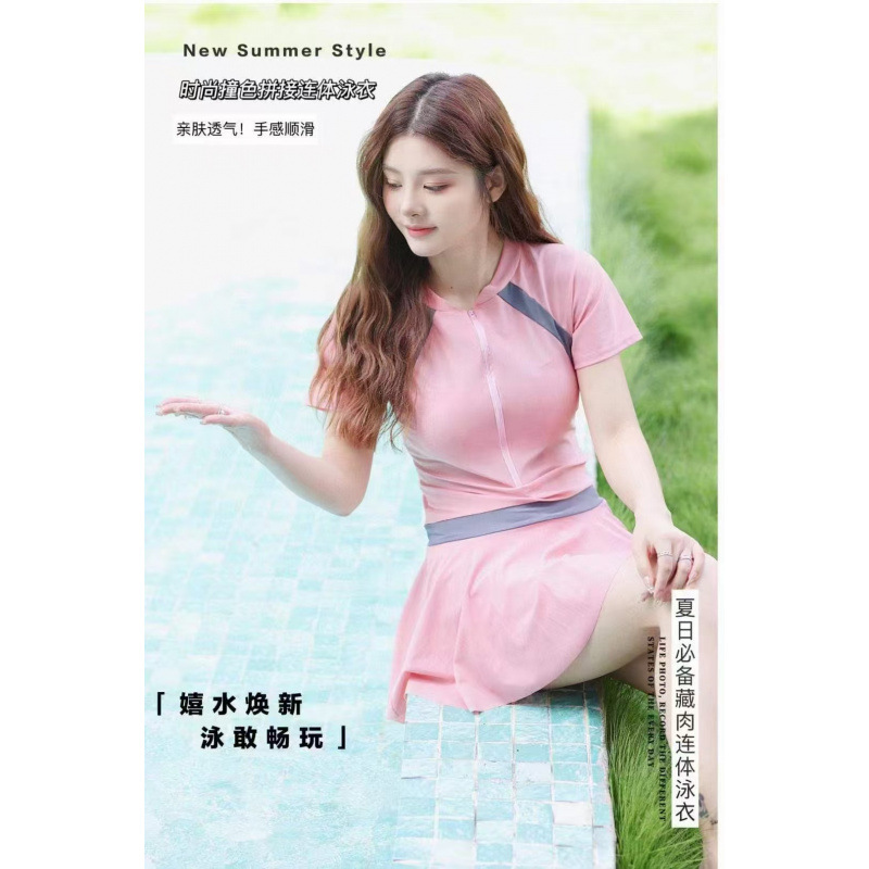 컬러블록 여성용 스커트형 수영복 2025년 신상 고급스러운 온천 수영장 전용 여성용 원피스 수영복스토어 가기