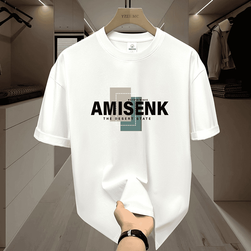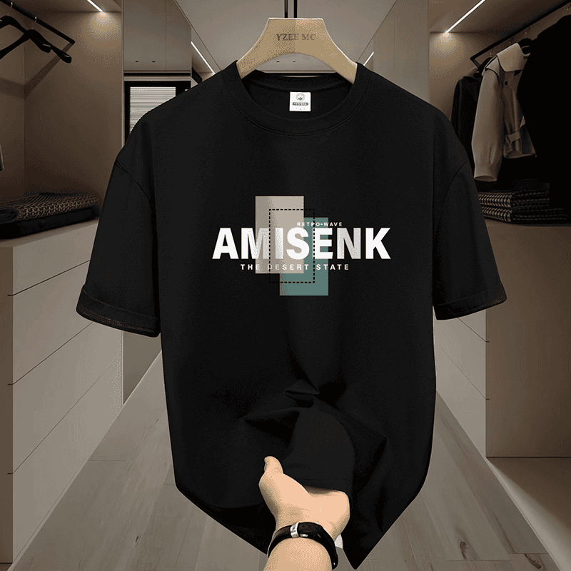 2025 새로운 여름 남성 프린트 반팔 티셔츠 통기성 땀 흡수 라운드 넥 캐주얼 다목적 기본 셔츠 ins스토어 가기