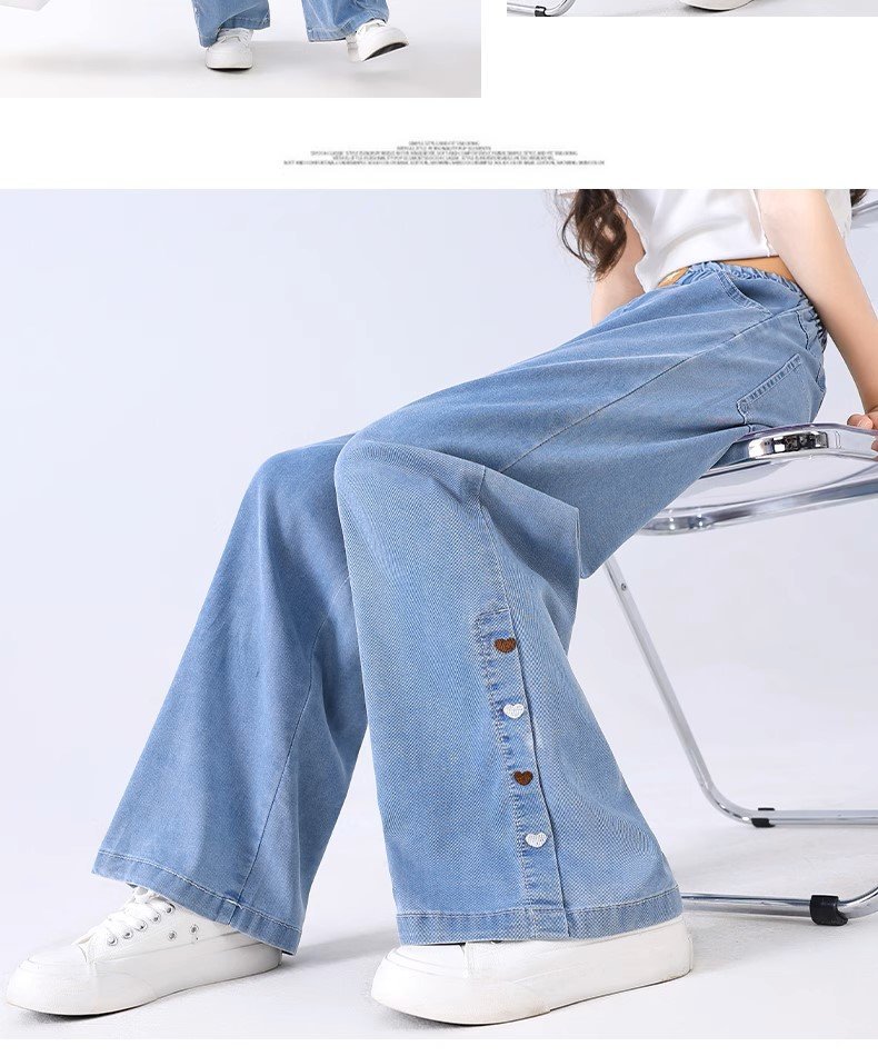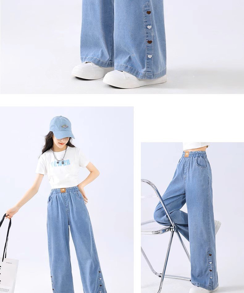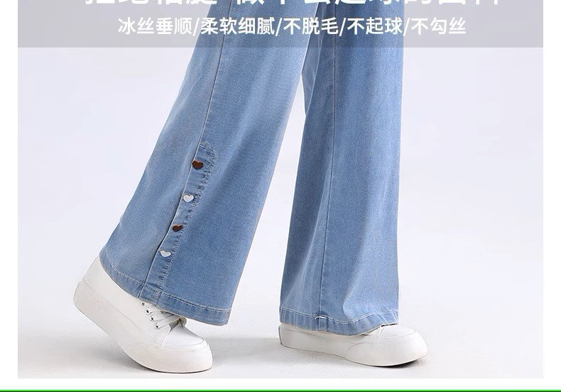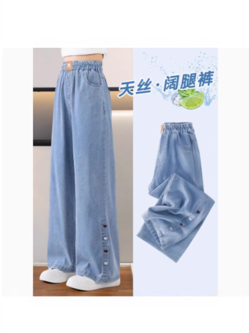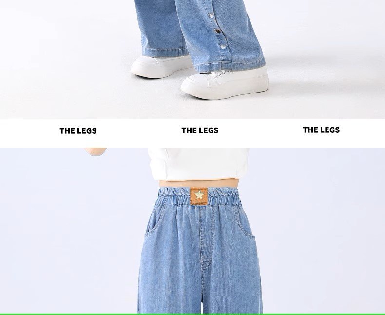 여아 바지 여름 얇은 아동용 2025 새로운 봄 여름 실크 청바지 큰 어린이 여름 얼음 실크 모기 방지 바지스토어 가기