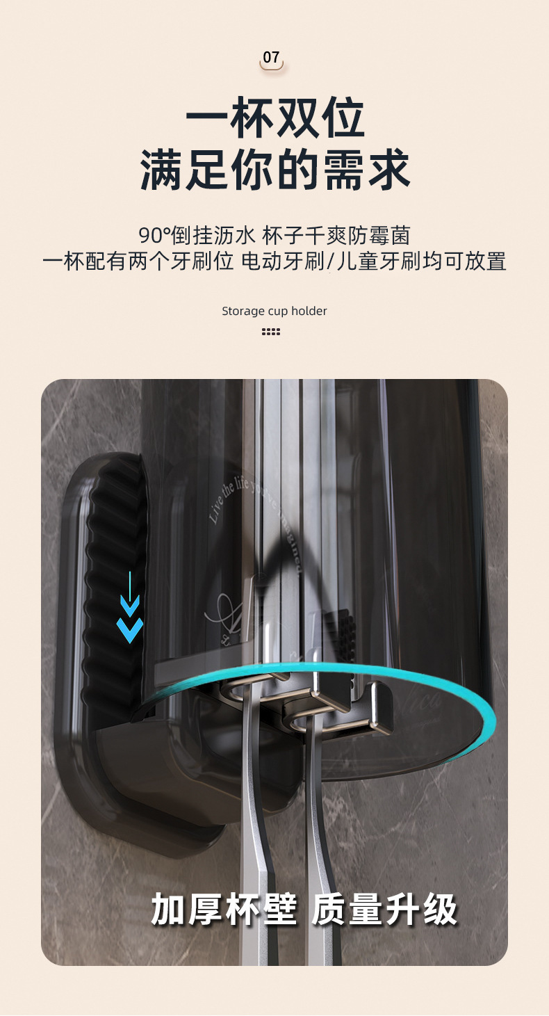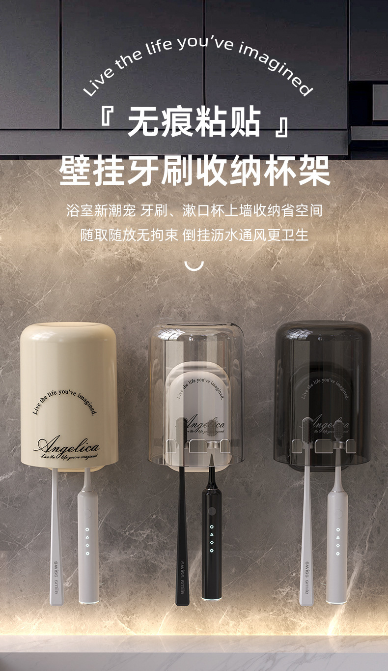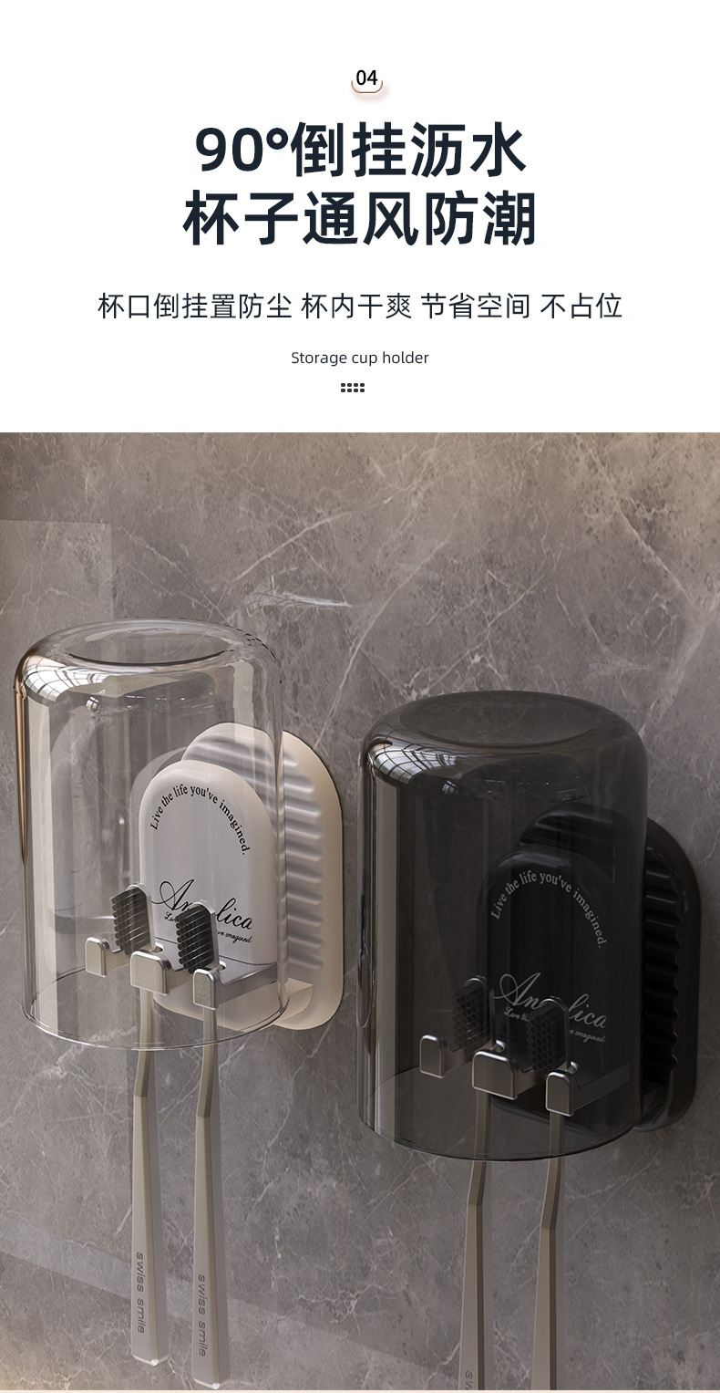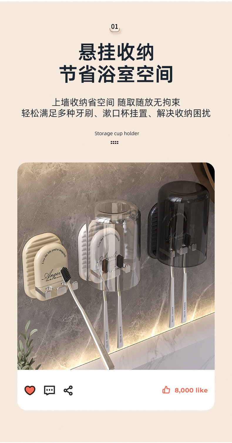 구멍이 없는 칫솔걸이, 욕실 벽걸이 칫솔컵, 구강청결제 컵 수납, 가벼운 럭셔리 전동칫솔걸이스토어 가기