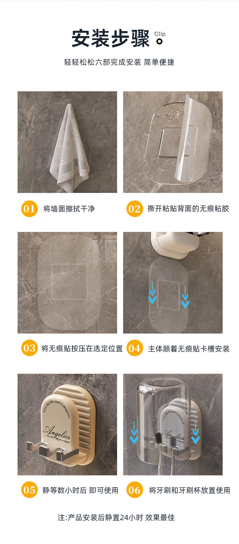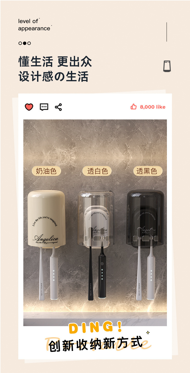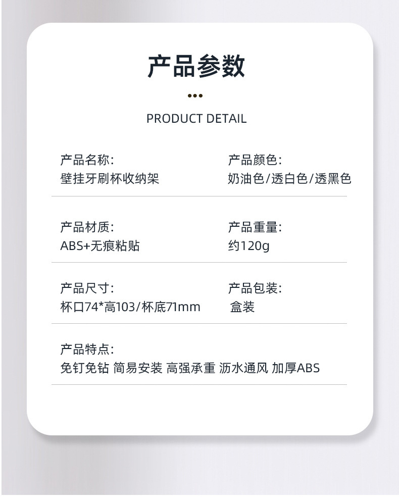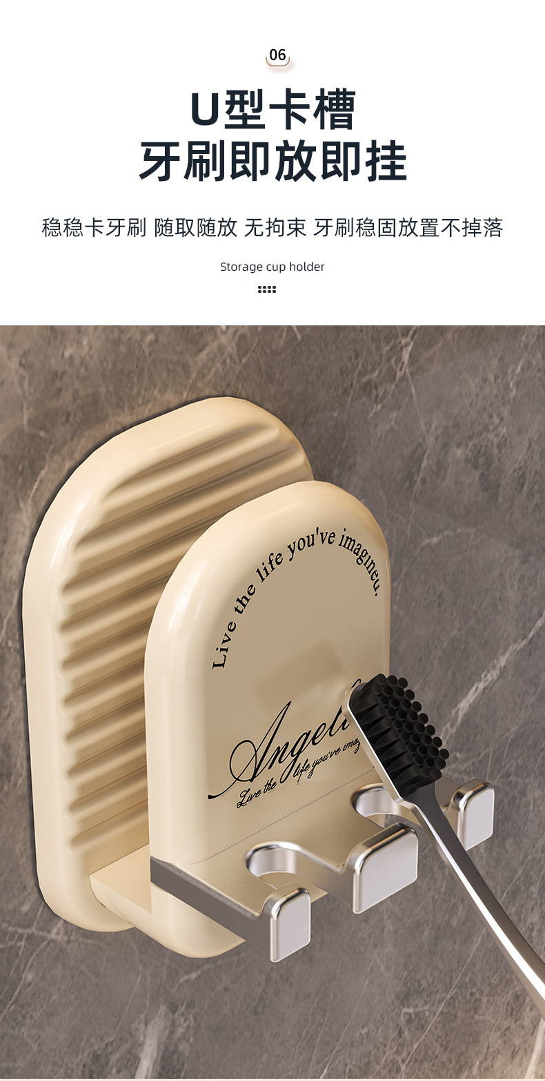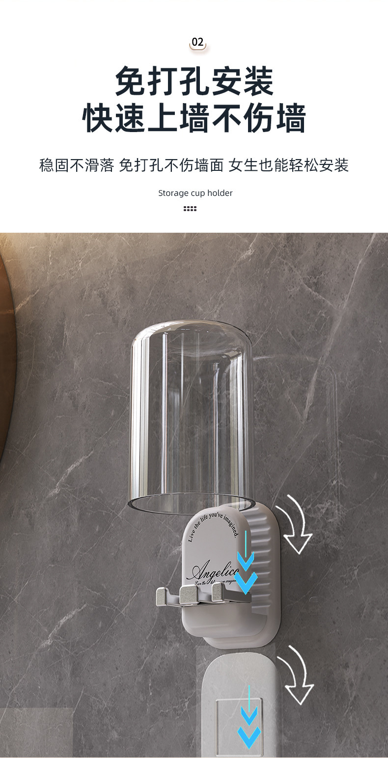 구멍이 없는 칫솔걸이, 욕실 벽걸이 칫솔컵, 구강청결제 컵 수납, 가벼운 럭셔리 전동칫솔걸이스토어 가기